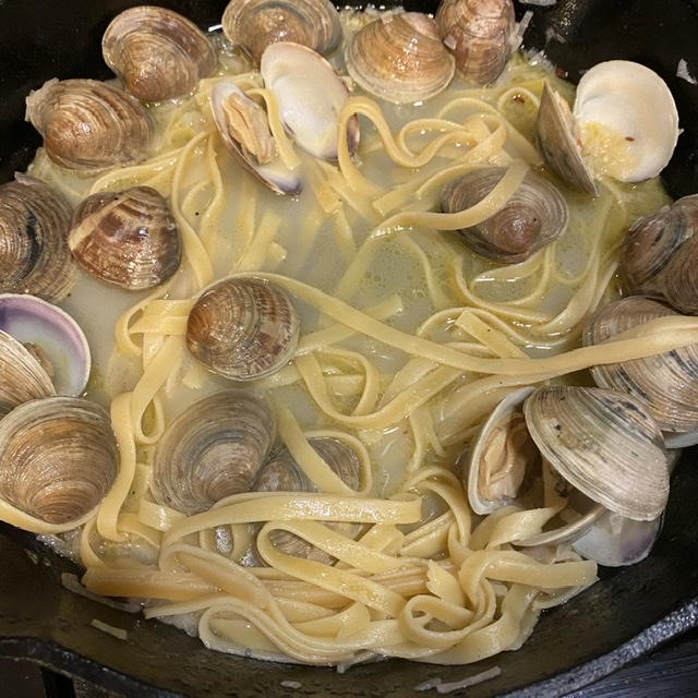 You can serve the clams on their own or add cooked linguine and toss until combined.