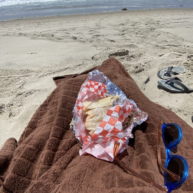 The beach was practically empty so around 12:30 my husband took the 5 minute walk via the underpass for the Pacific Coast Highway and picked up lunch.