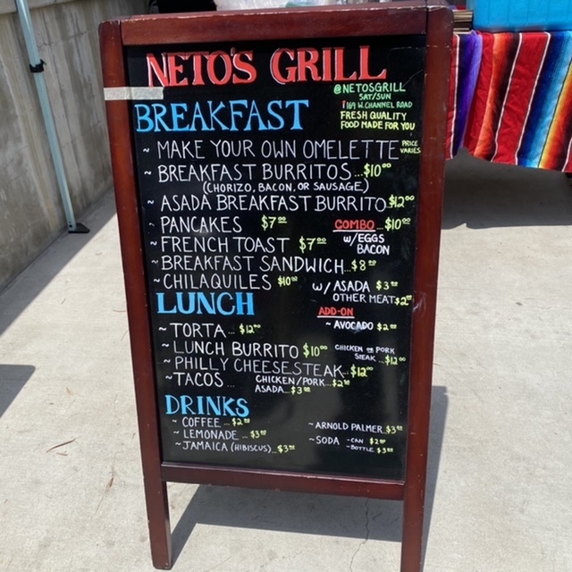 Neto’s Grill 169 West Channel Road. Pacific Palisades, California. Open Weekends 8am-3pm and Wednesday-Friday 4-9:30pm.