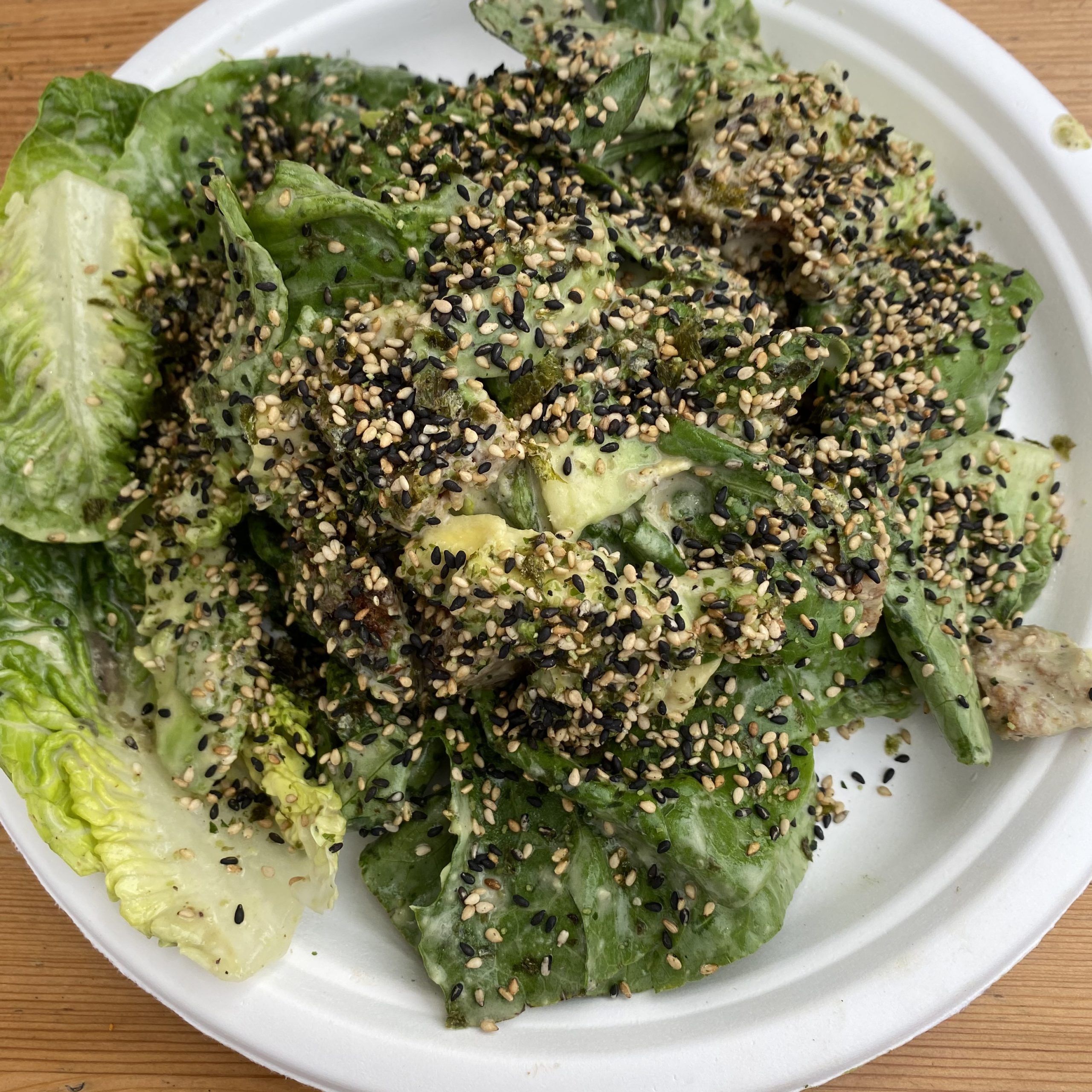 The chilled, super crisp Vegan Caesar was abundantly tangy with kombucha (seaweed), croutons, furikake (Japanese seasoning) and avocado ($18).
