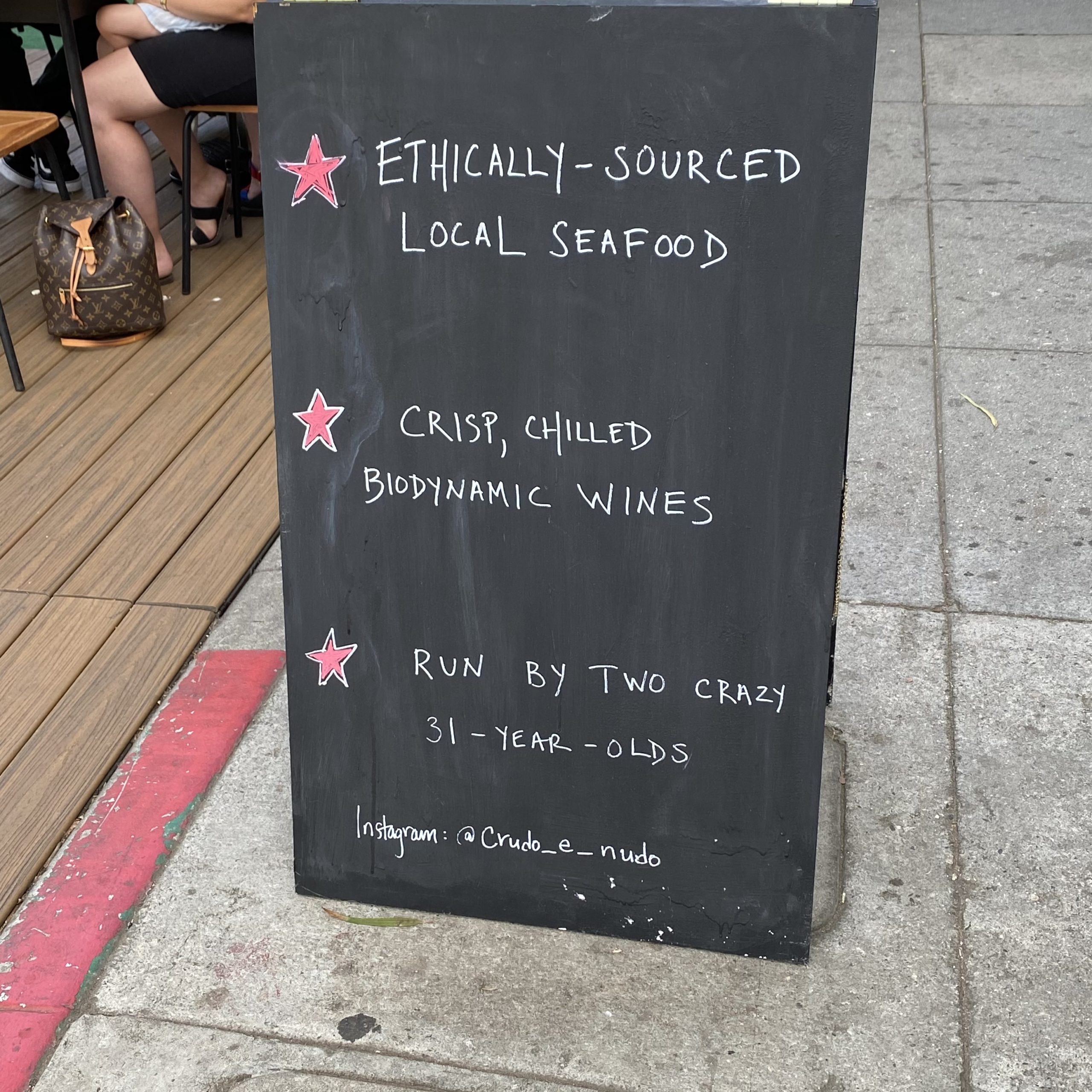 I do not know if it was the intoxicating concept of date night after a long absence or the fact that Crudo e Nudo is just that good.