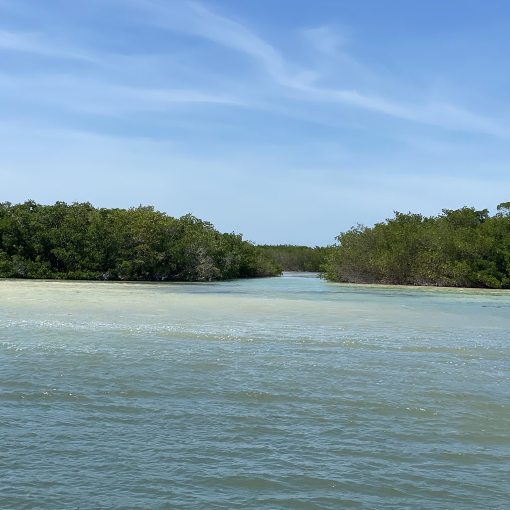 The Caribbean Sea was a navy color in sharp contrast to the lighter shade of the Gulf water.