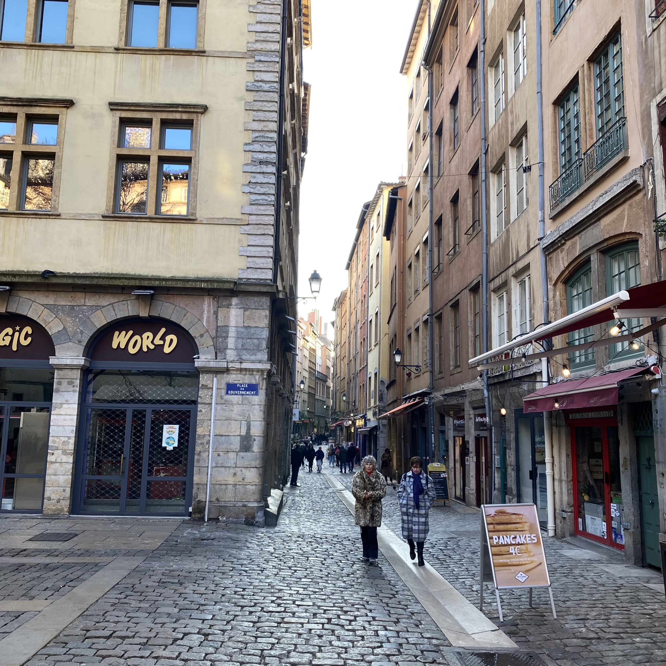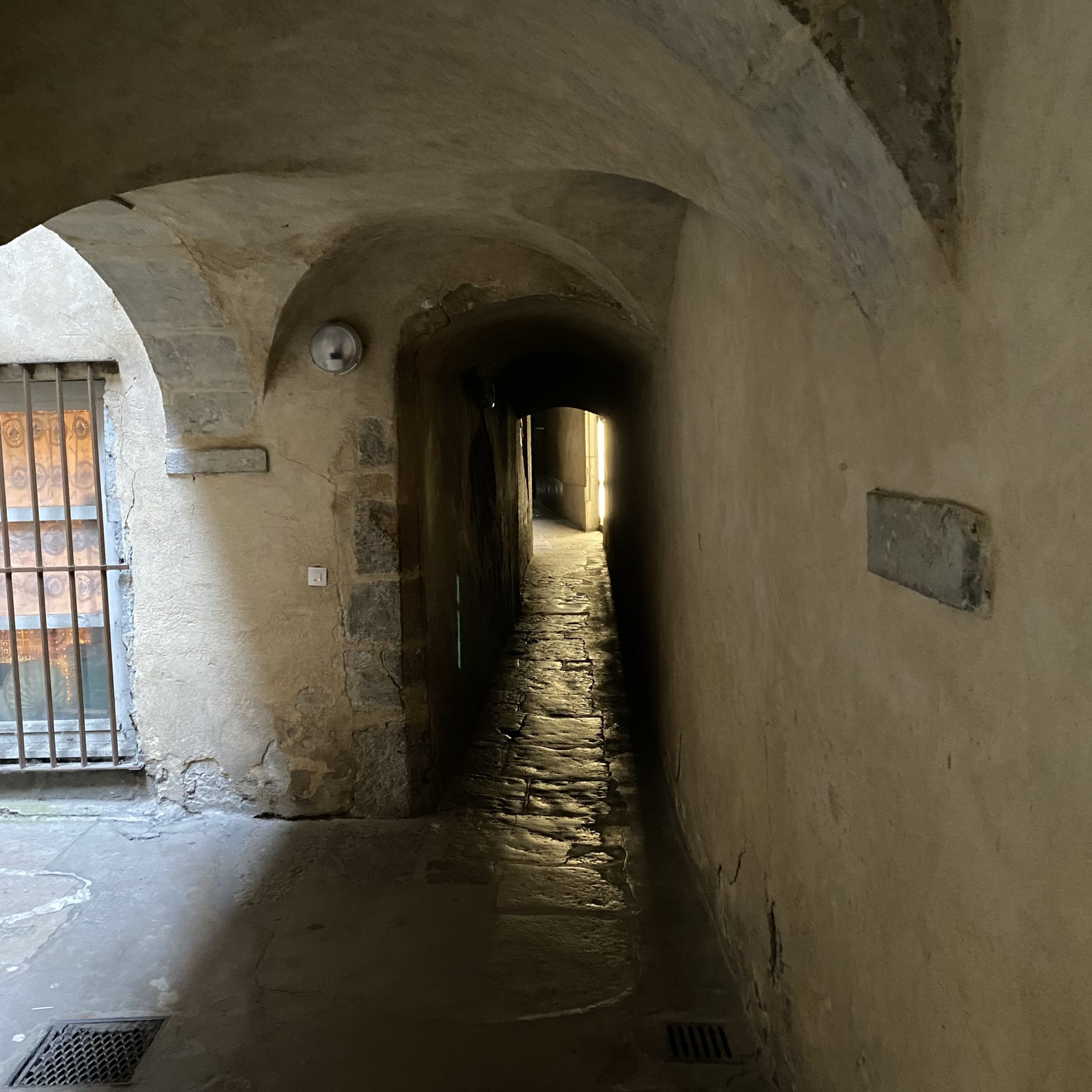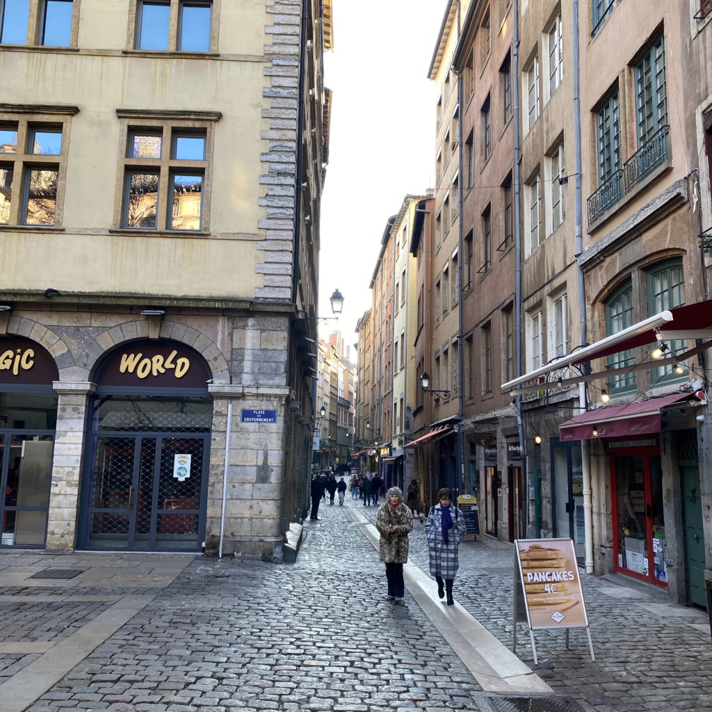 We strolled through Rue St. Jean and Rue de Boeuf and found #54 Rue St. Jean. We located a traboule, a secret passageway, that was built to accommodate the money changers for the wealthy Lyonnaise bankers and merchants during the French Revolution.