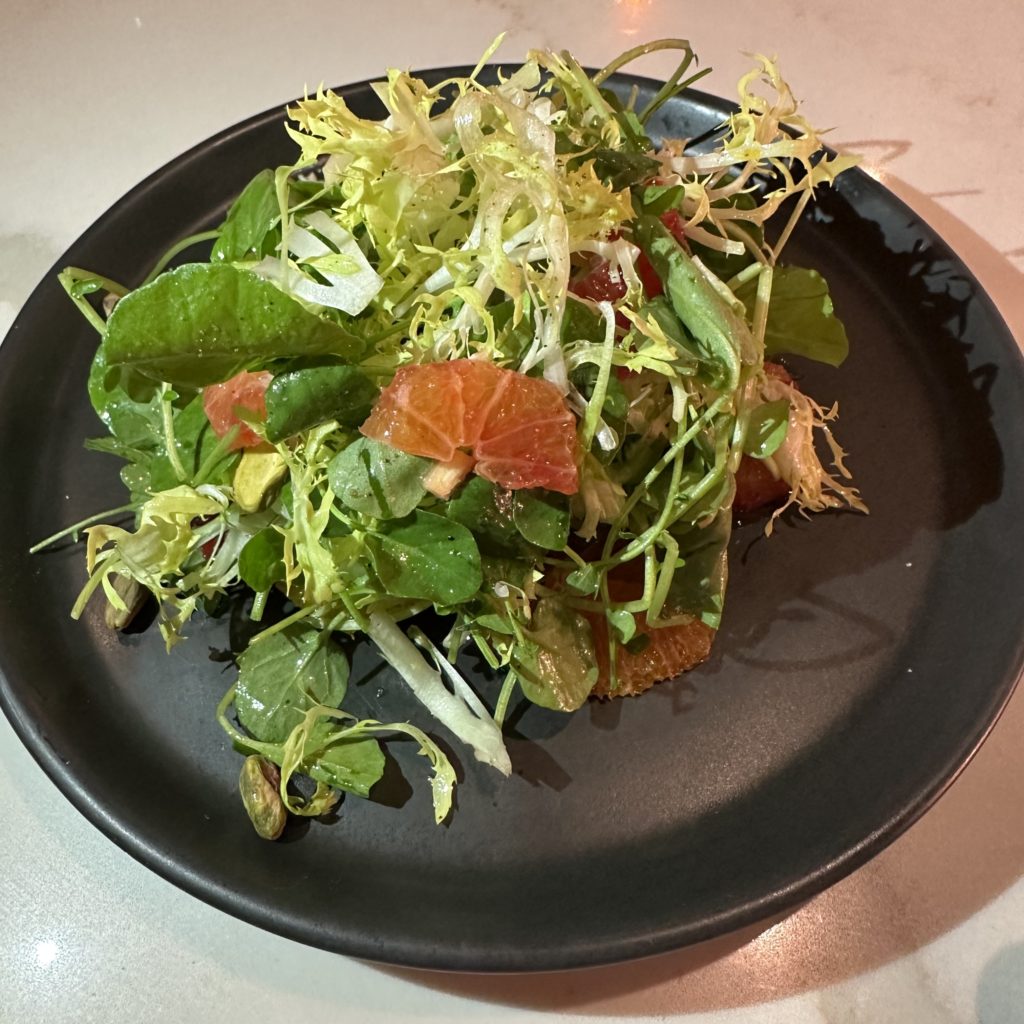 Again, I was less than enthused about ordering a salad. My husband was so right. La Salade D’Automne was a delectable and refreshing citrus salad with c$22).