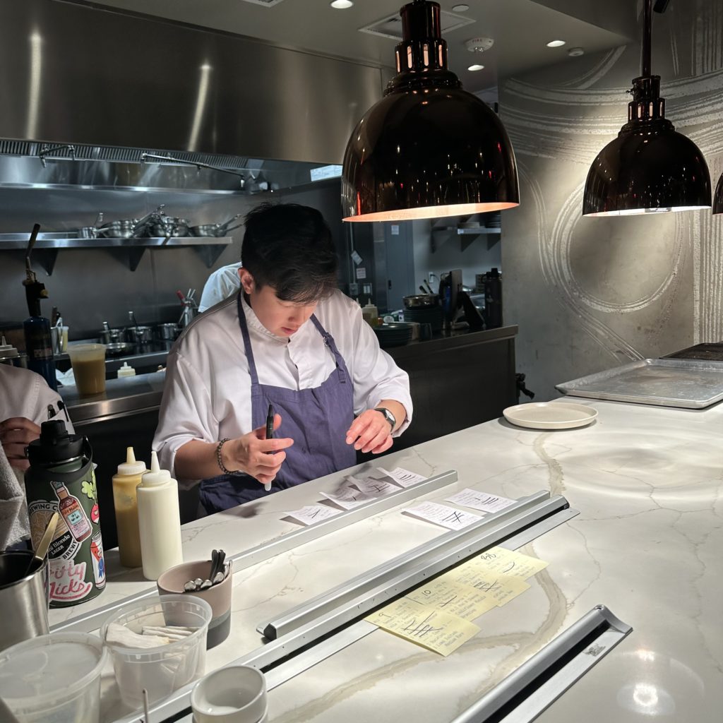 I was fortunate to sit at the chef’s counter, part of a long bar that overlooks an open kitchen. I was able to witness the magic that Chef Vannah personally creates and oversees.