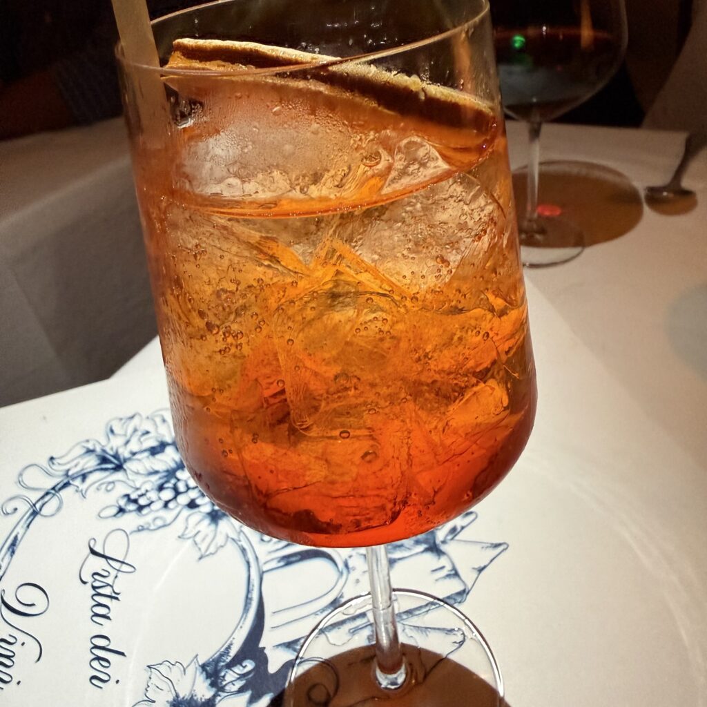 We started with an Aperol Spritz ($18) and a fine Chianti ($14).
