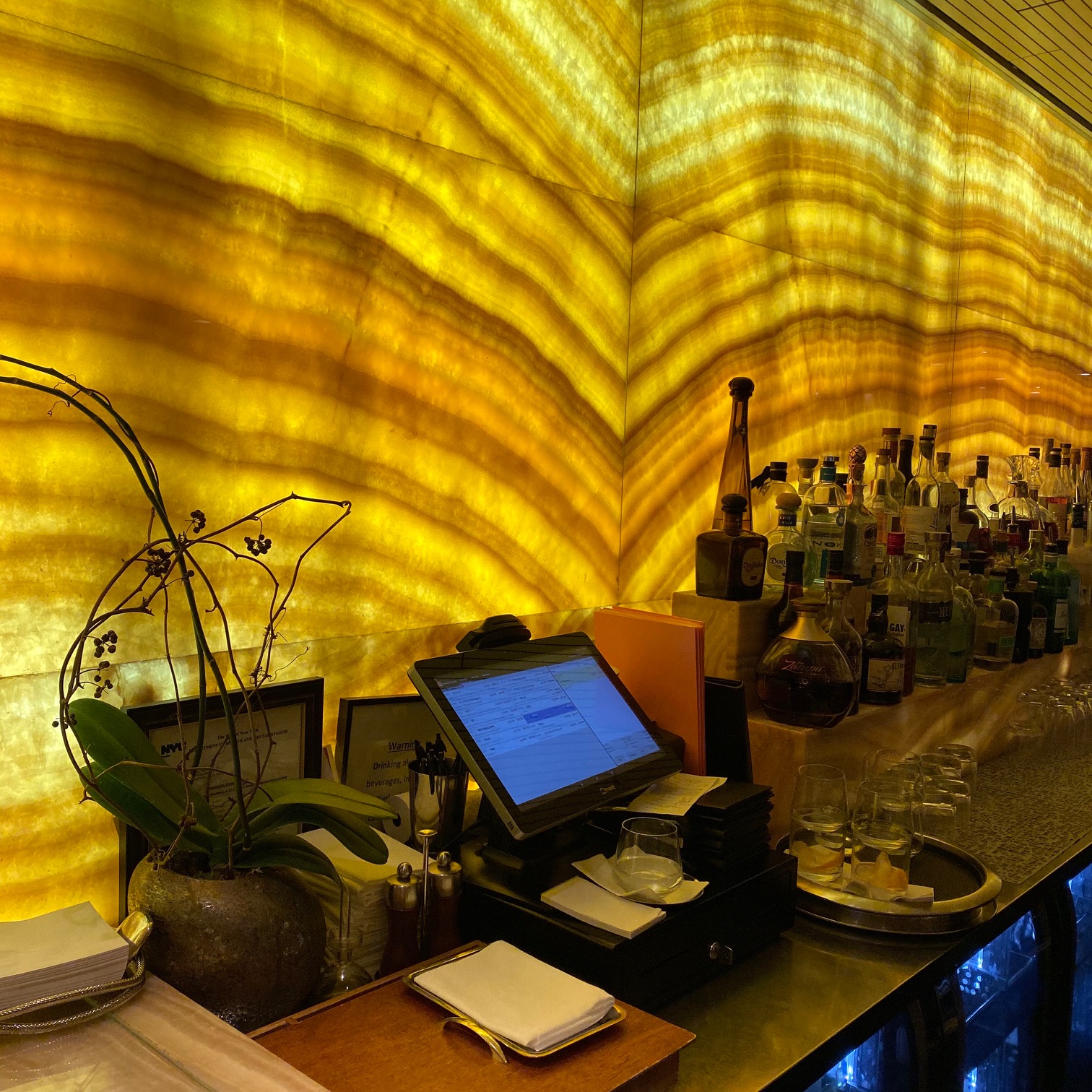 Marea’s bar is always packed and consistently provides a golden glow over the premises.