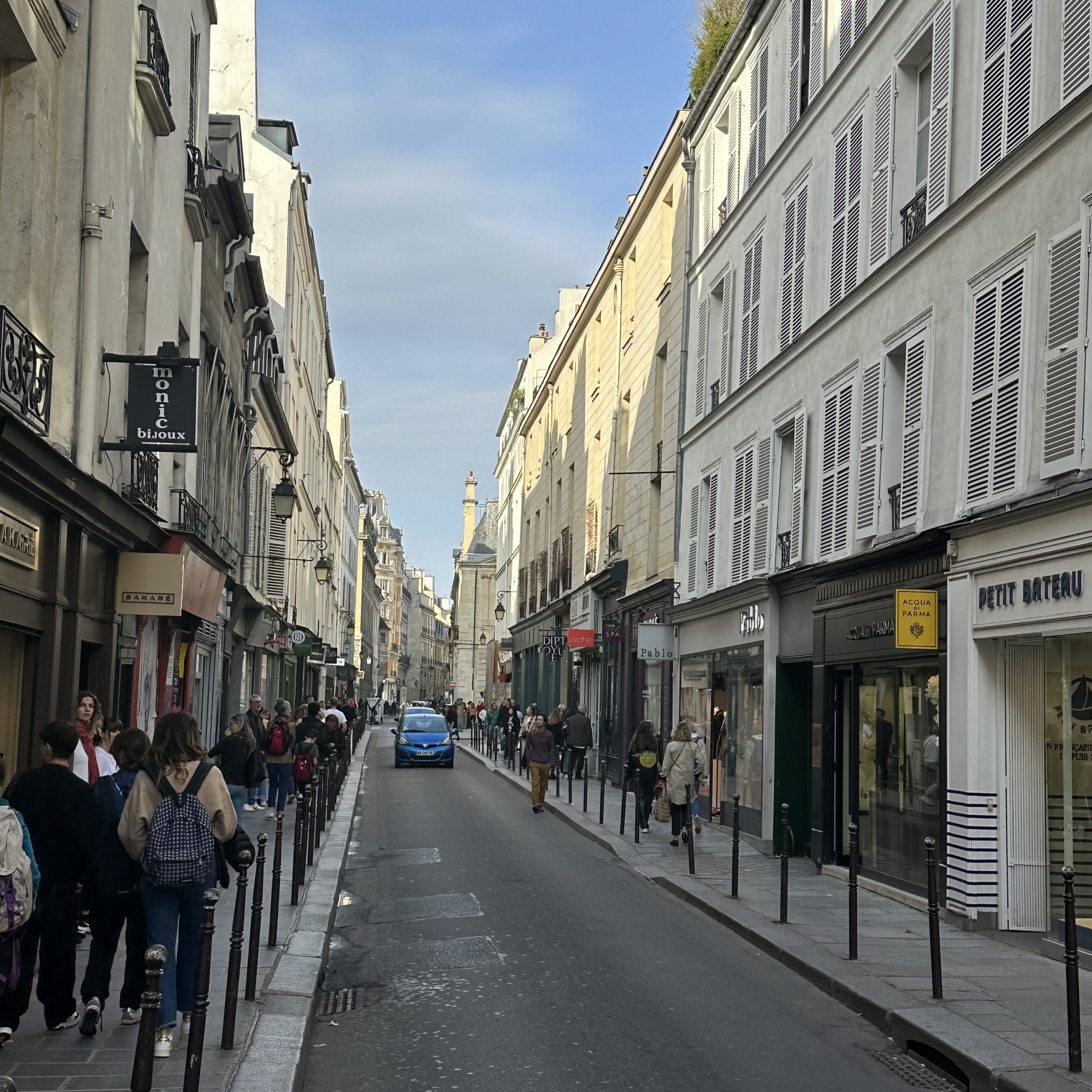 We traversed one of my favorite little shopping streets, Rue Francs Bourgeois.