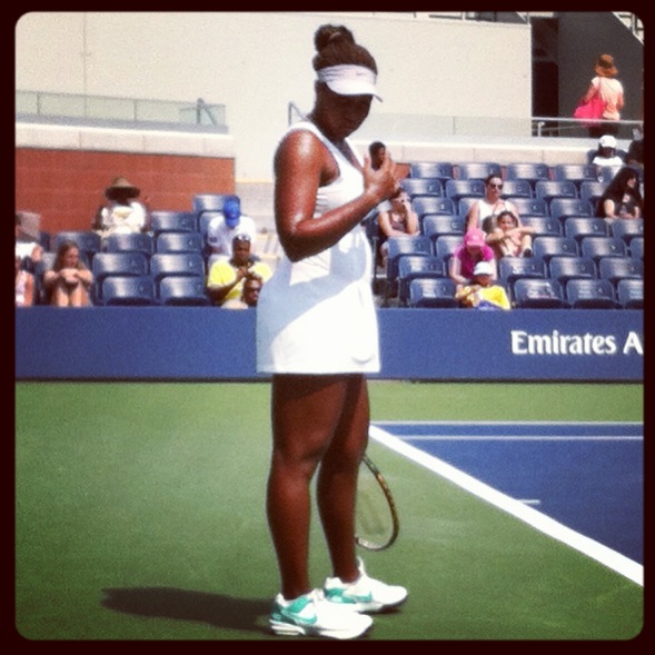 Player roll call today includes, Venus Williams in some stylin’ black and white work out pants practicing in public. Ana Ianovic patrolling the promenade…Ana is beautiful, tall, long legged…a real stunner. I watched the second set of American up and comer, Taylor Townsend who is 17 and took down the #11 qualifier in straight sets.