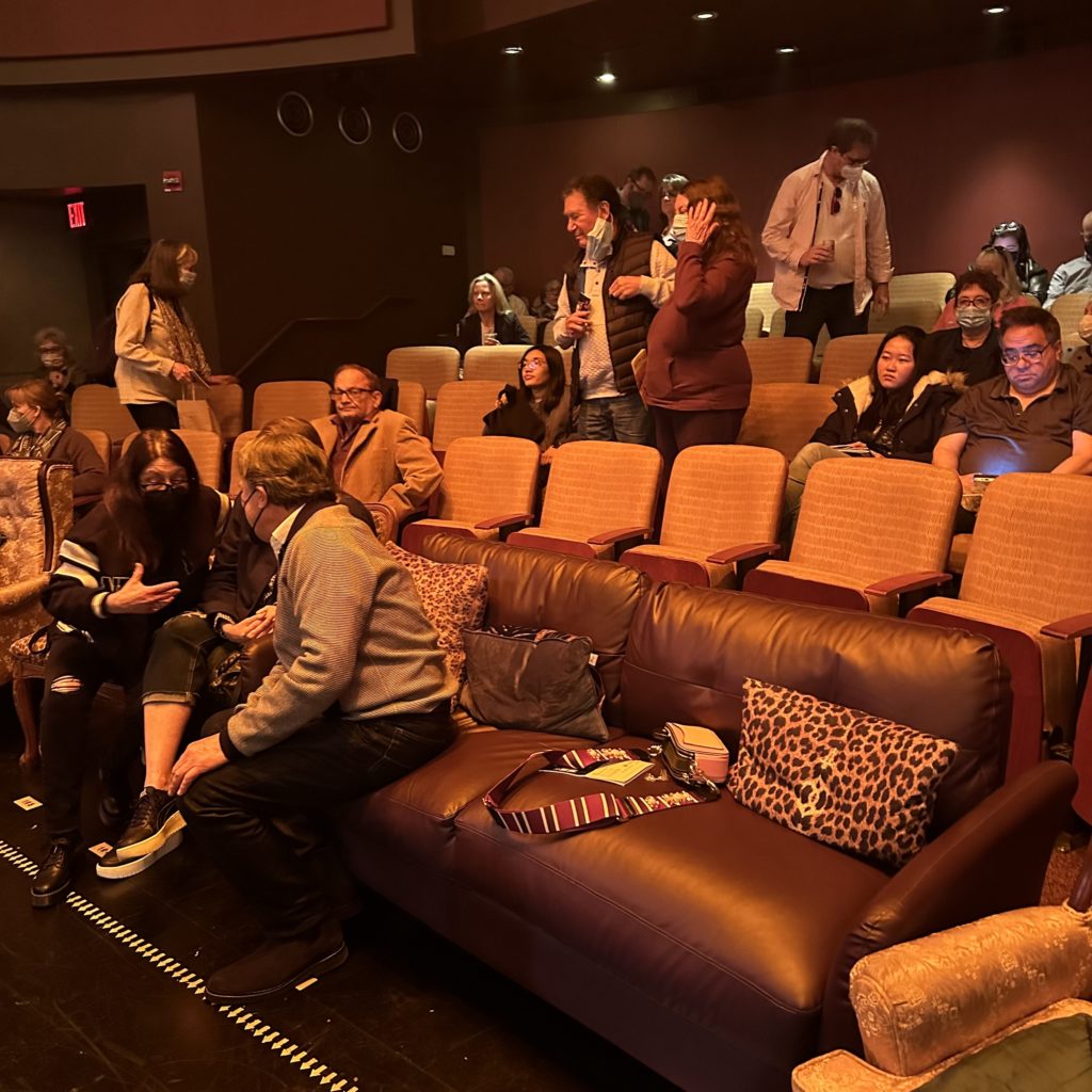 Another benefit to being early to the party besides good parking is we sat outside in the attractive theater patio area and met two dynamic, creative women who have a production company and knew our daughter…6 degrees of separation.