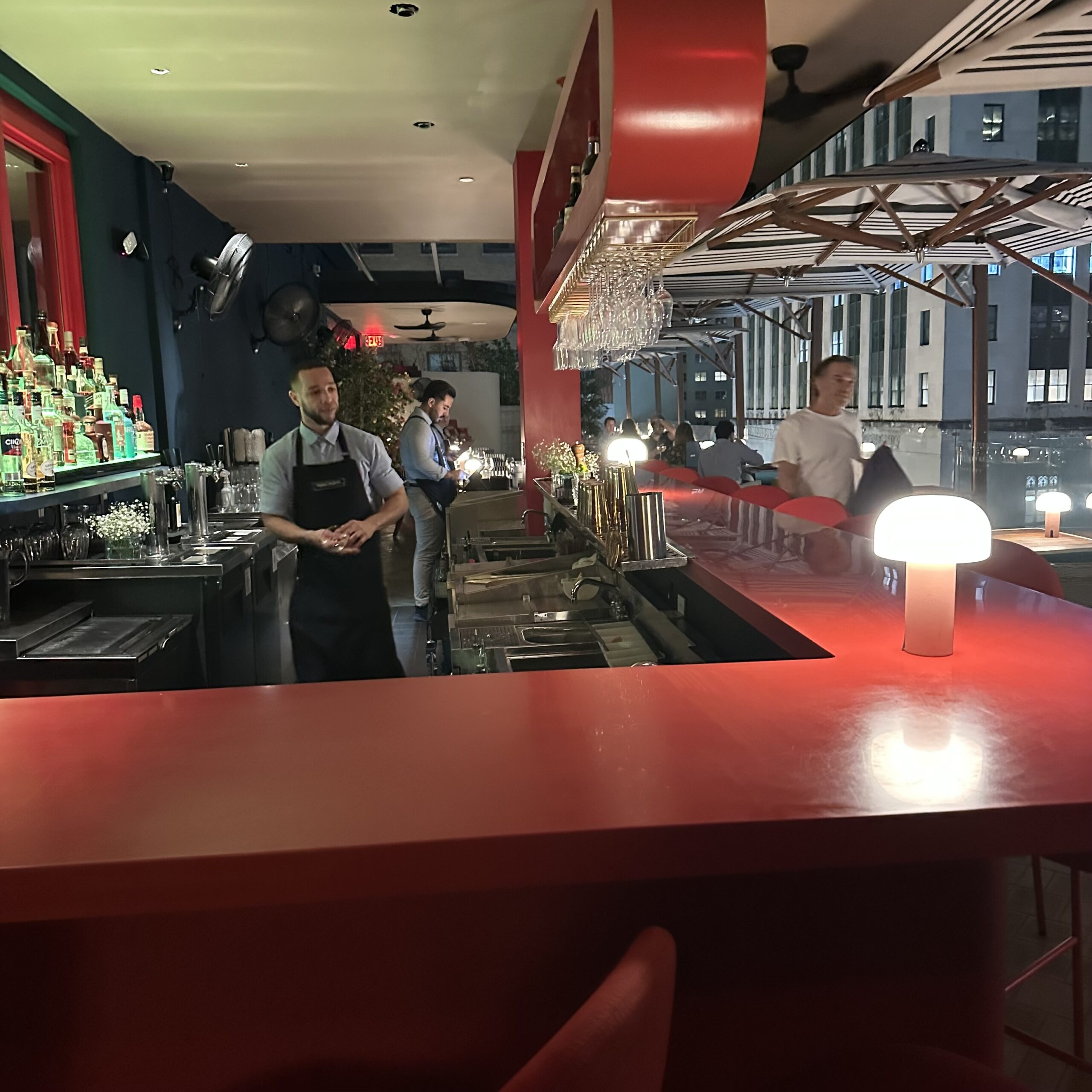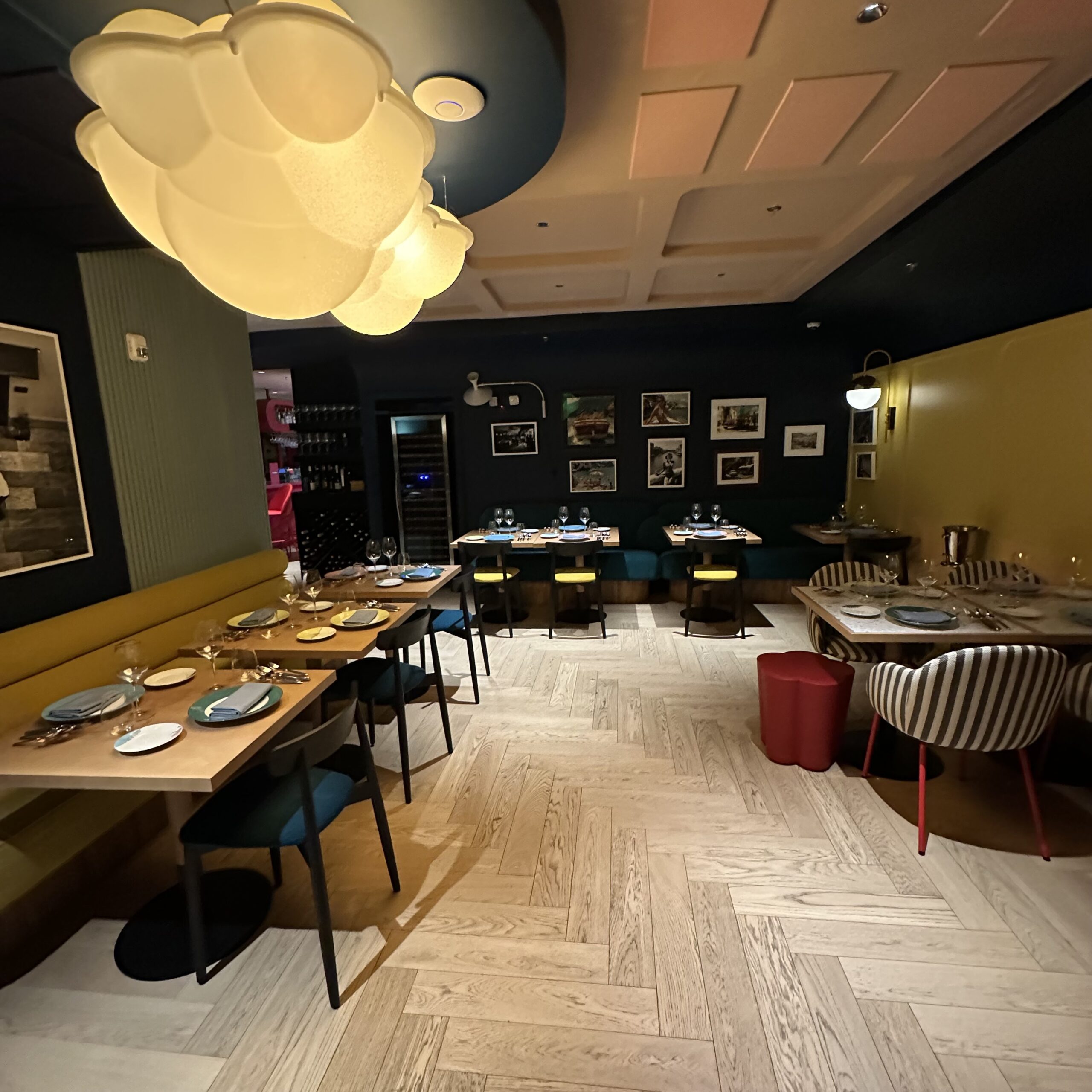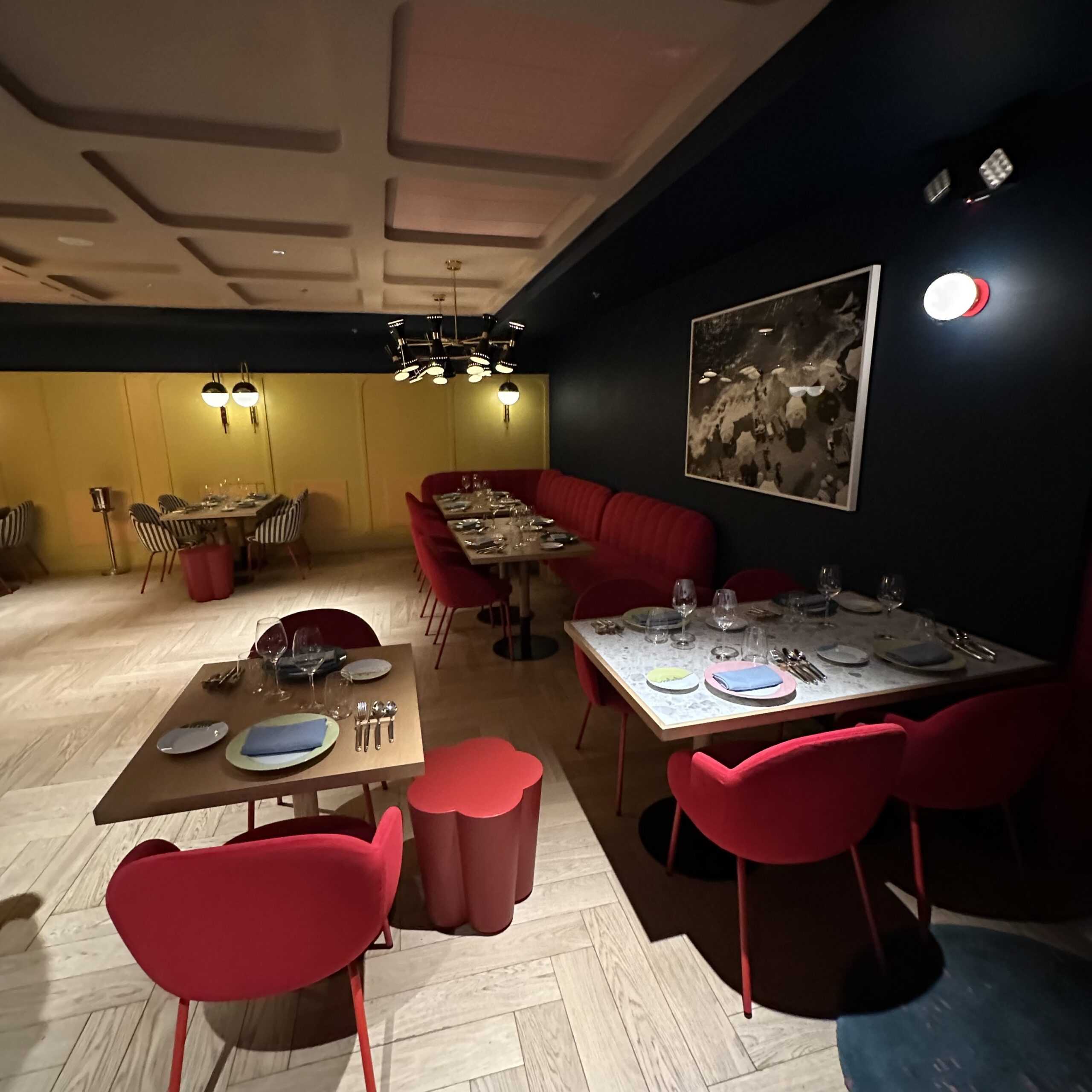 Torno Subito in Miami draws its design inspiration from Chef Massimo Bottura’s childhood memories of the Italian Riviera. The interior mixes bold colors and playful elements.