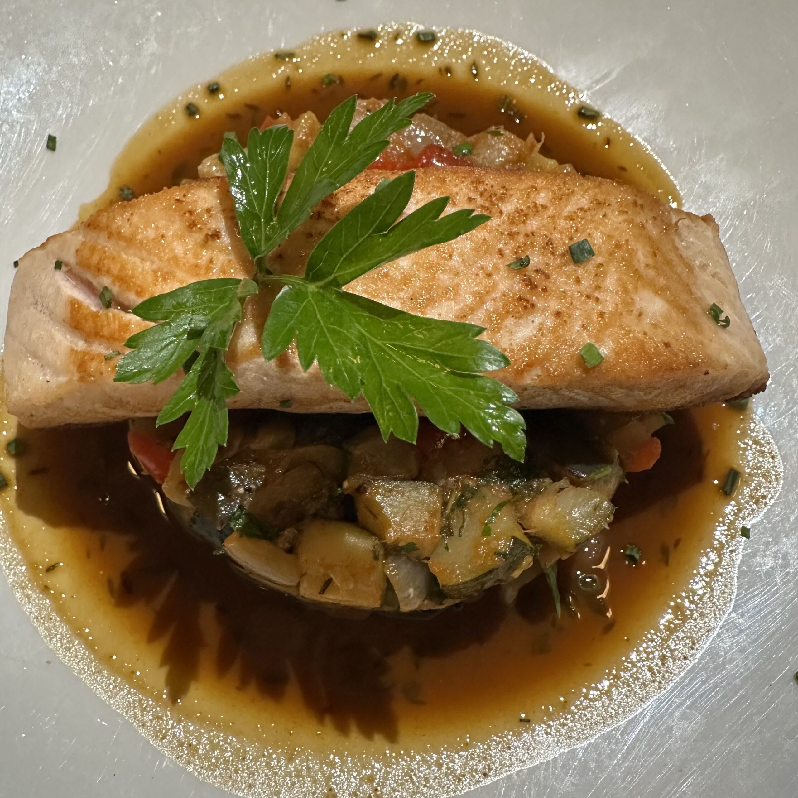 My husband chose the well prepared Grilled Salmon with delicious Ratatouille ($30).