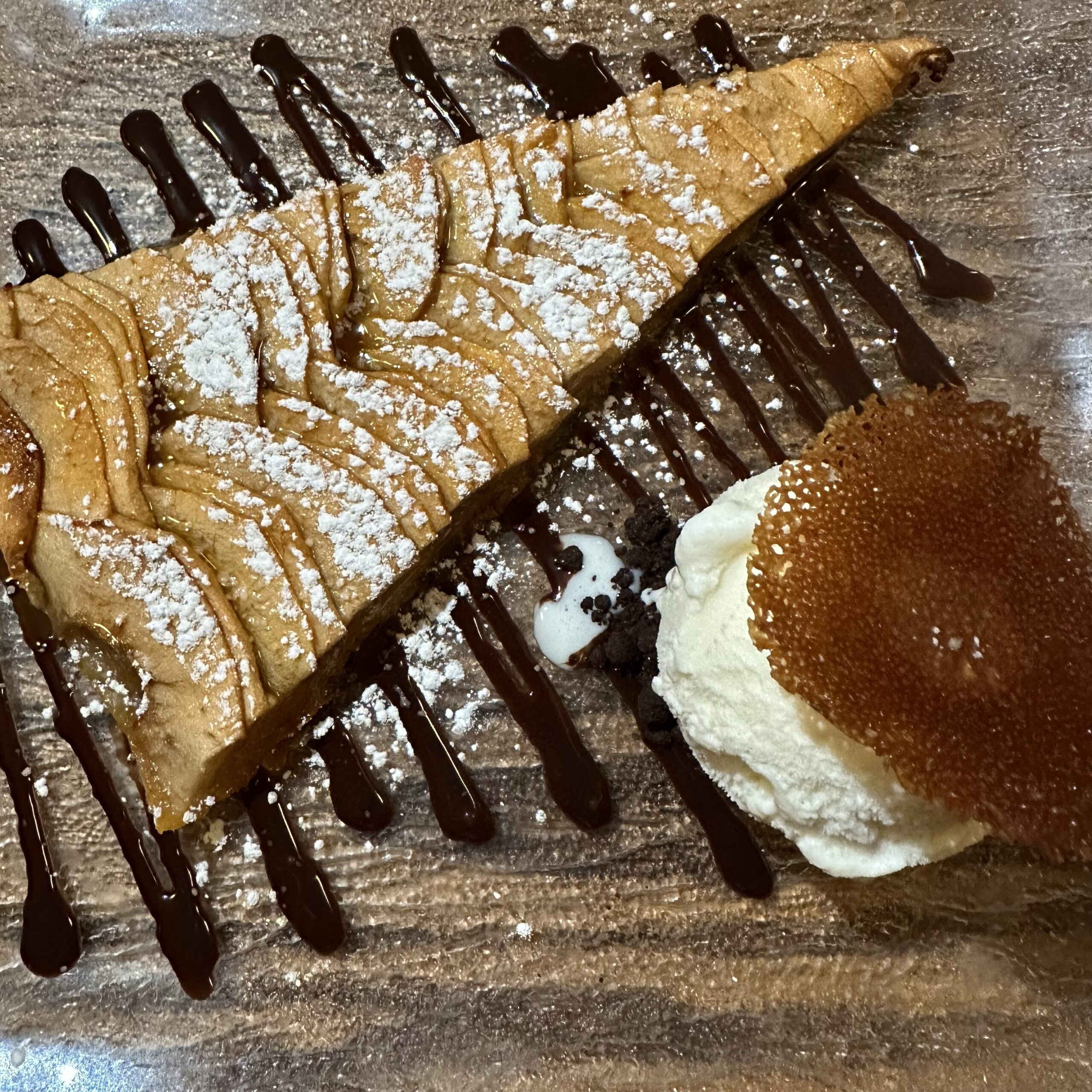 I opted for the creamy Creme Brûlée with a satisfyingly crunchy carmelized sugar layer. The other dessert was an Apple Tart with vanilla ice cream.