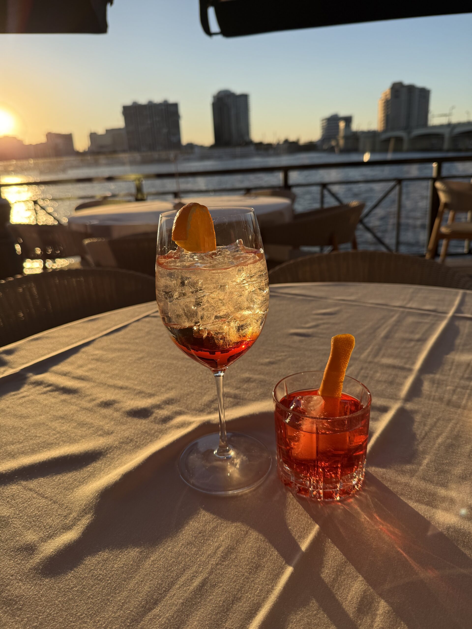 We were fortunate to snag an outdoor banquette at sunset and that’s when the magic began. We started with cocktails, indulging in a stellar Aperol Spritz ($24) and Negroni/Monkey 47 ($29).