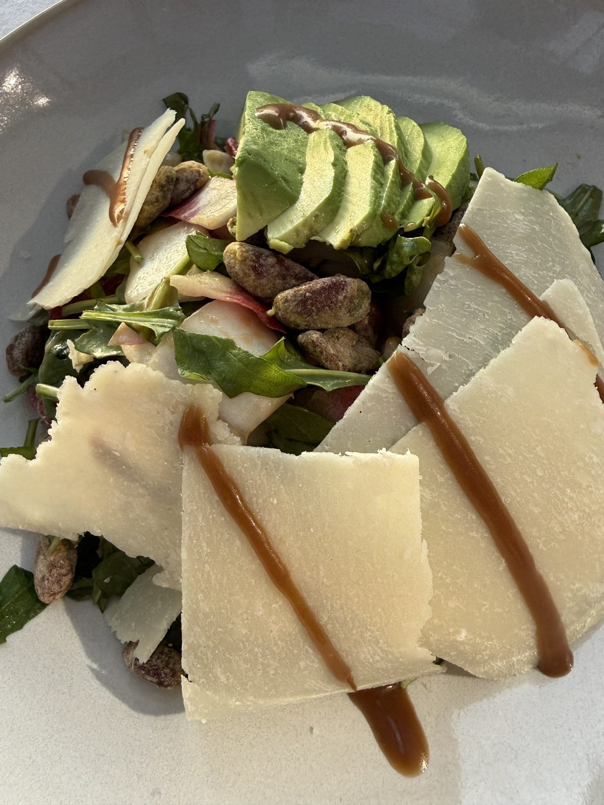 In a sea of ordinary salads and overdone Caesars let me introduce you to the Gabriella Salad with radicchio, endive, arugula, avocado, Parmesan, and crunchy pistachios. This salad understands its assignment. Fresh, crisp greens with bright notes and the kind of starter that makes you feel smugly virtuous right before ordering pasta ($32).