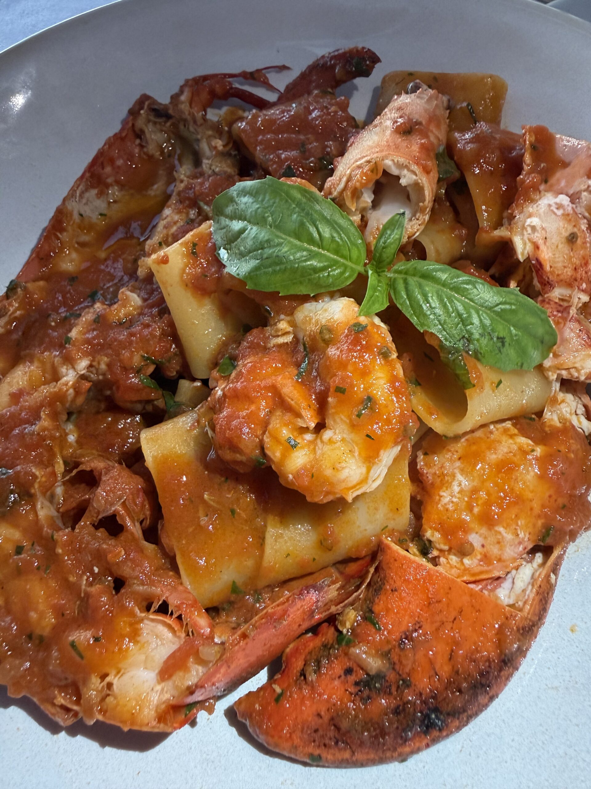 Our main course was Paccheri Pasta with Maine lobster and scampi, in a fabulous red cioppino sauce. The lobster meat which was served in the shell was sweet and tender. This dish arrives with confidence and earns it. Generous chunks of lobster, properly cooked pasta, and a sauce that tastes like the Mediterranean showed up dressed for dinner. Rich, but balanced, indulgent without being heavy-handed, it’s exactly what lobster pasta should be when it knows it is the star attraction ($75).