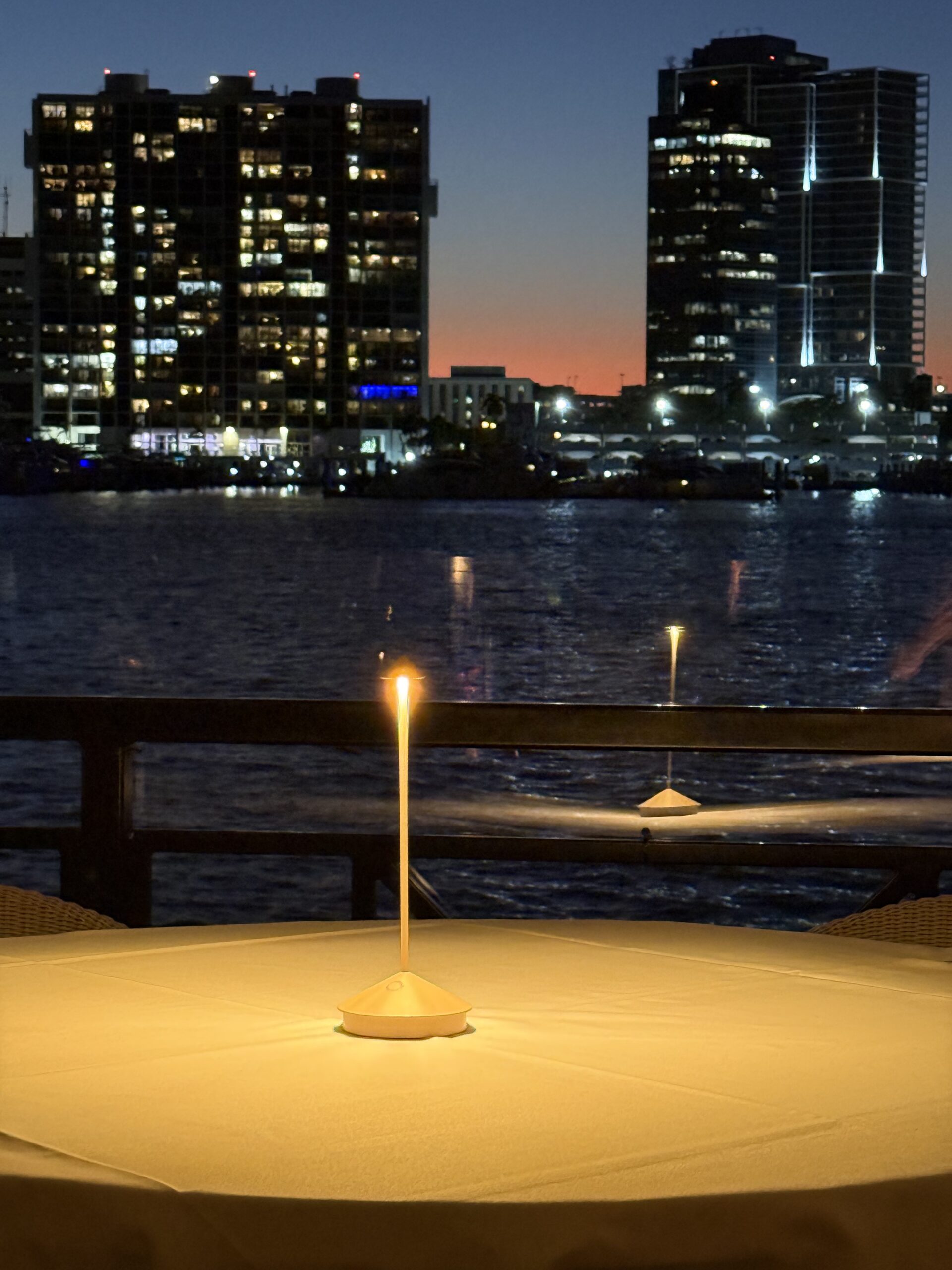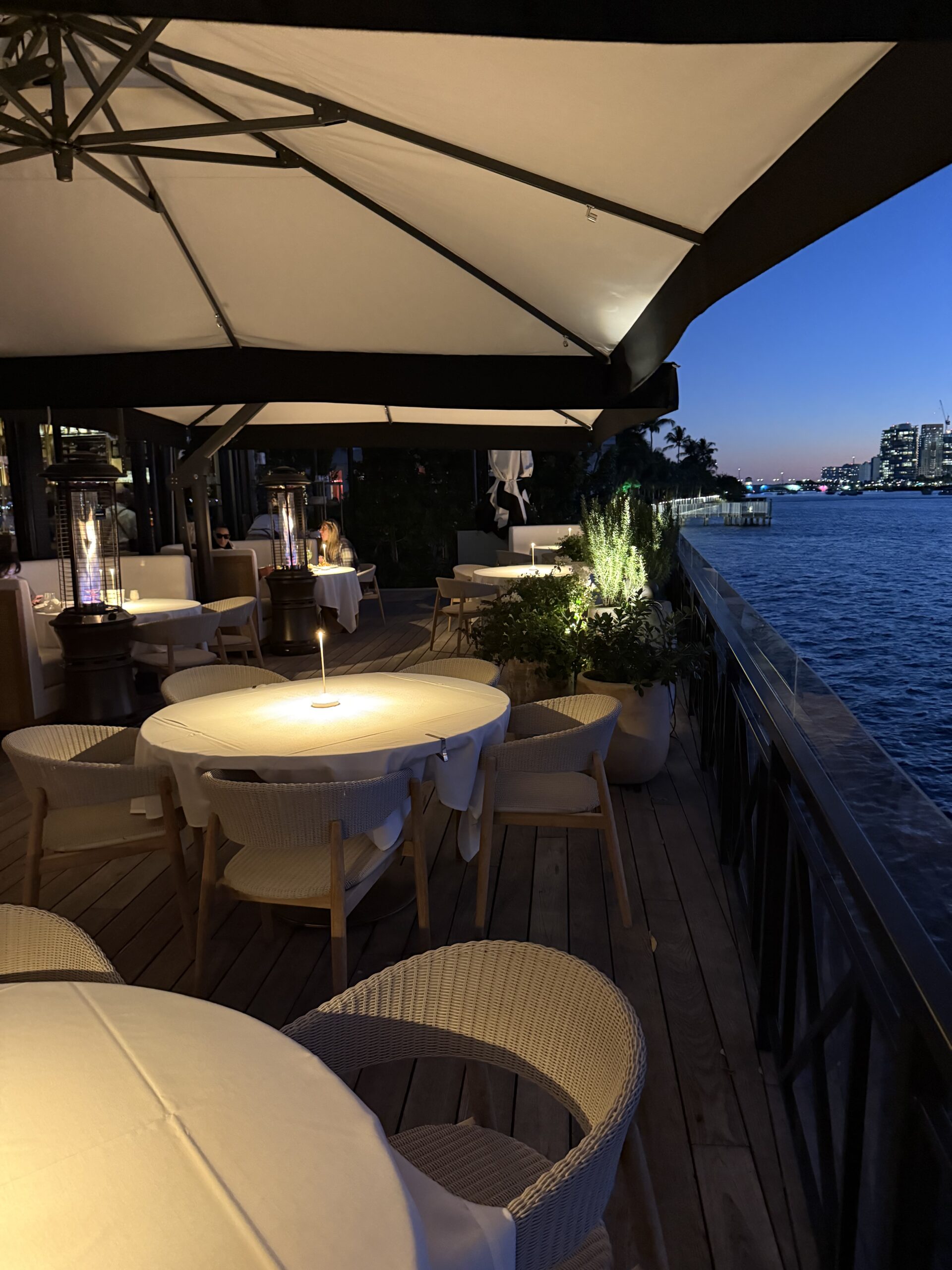 A highlight of the evening besides the delectably creative coastal Mediterranean cuisine overseen and executed by executive chef Agostino Petrosino and chef de cuisine Carmine Nozzolino, was the view from our comfy banquette. The ever evolving evening sky transitioned from dusk to sunset to nightfall.
