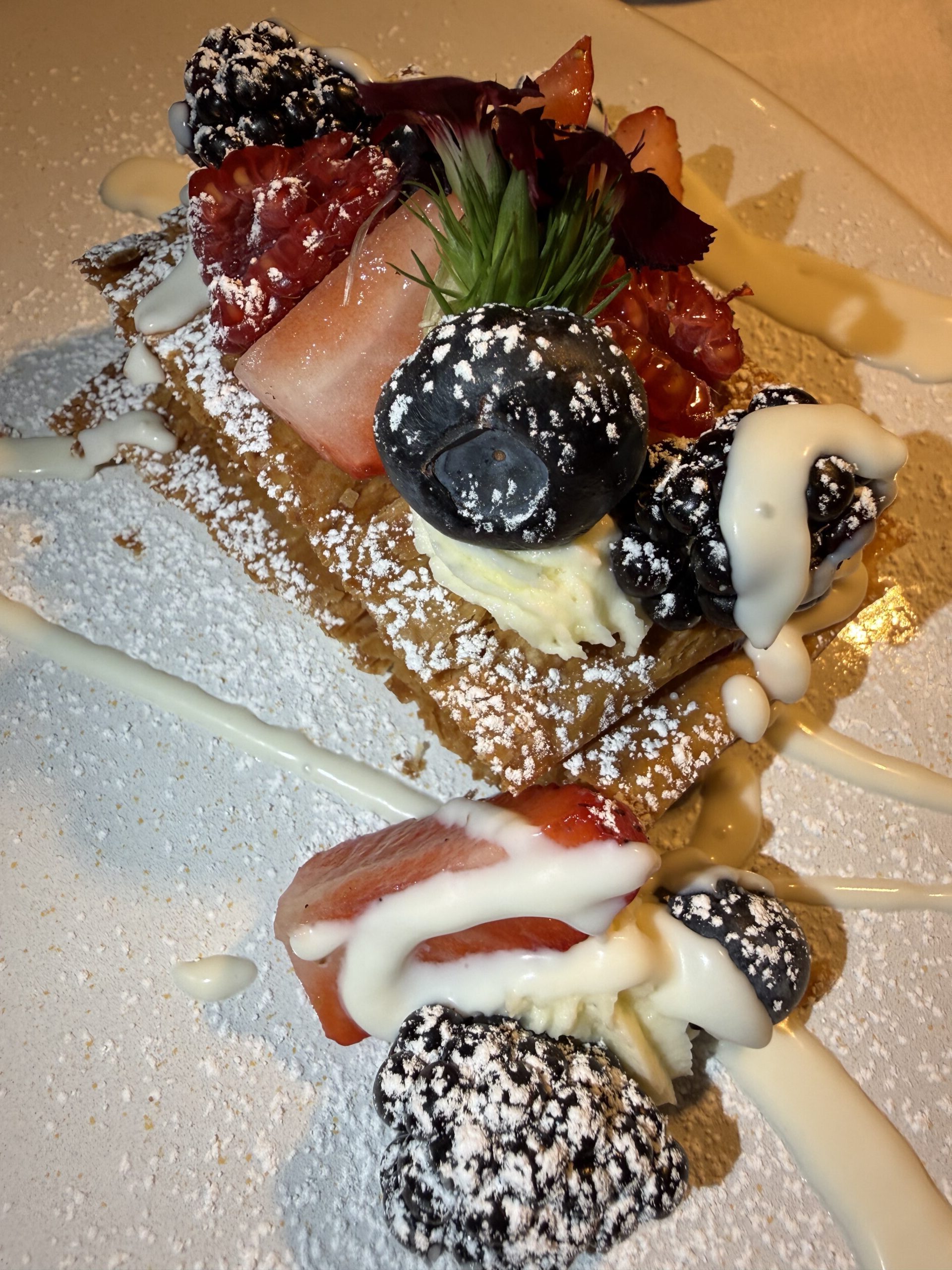 The evening’s featured dessert, Millefoglie, provided the perfect ending with crispy, flaky layers, fresh, tasty berries and a wonderful cream adornment. Millefoglie is the more rustic Italian version of Mille-feuille, the iconic French dessert ($18).