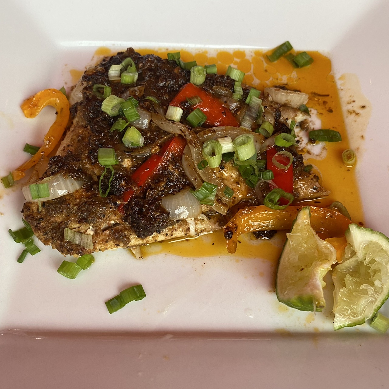 David got through the Blackened Jerk Snapper, but that guy was lite, as well ($16).