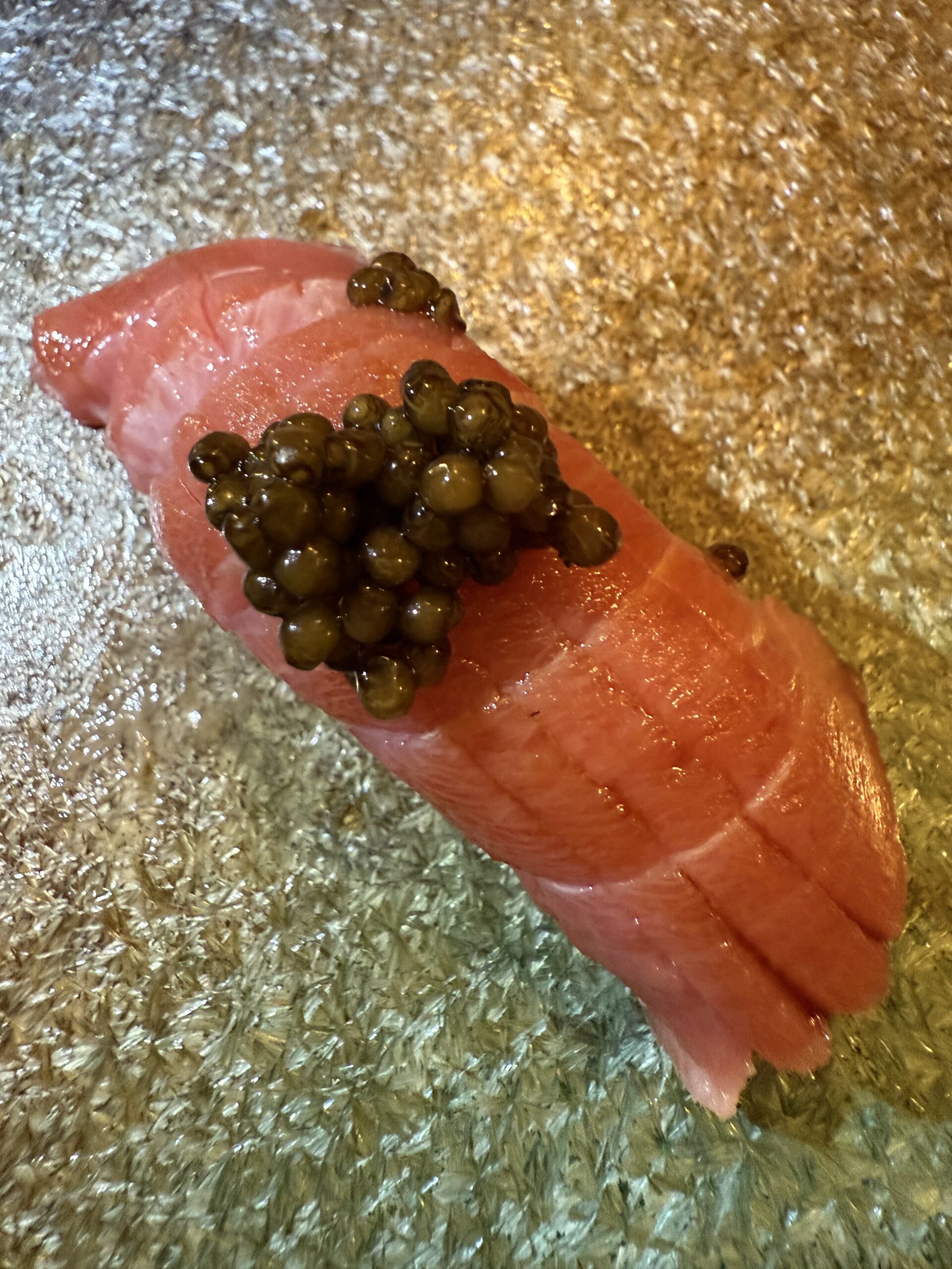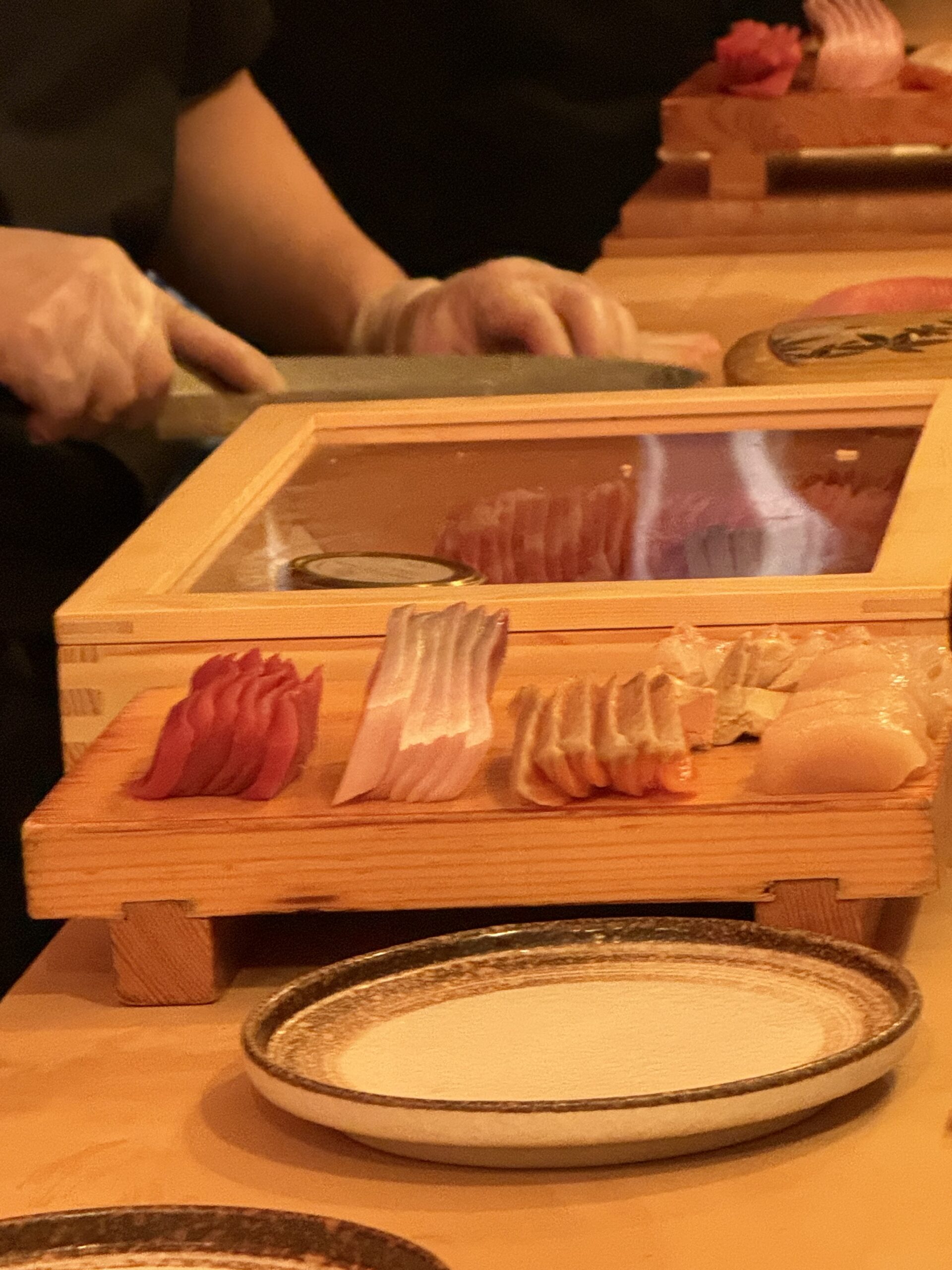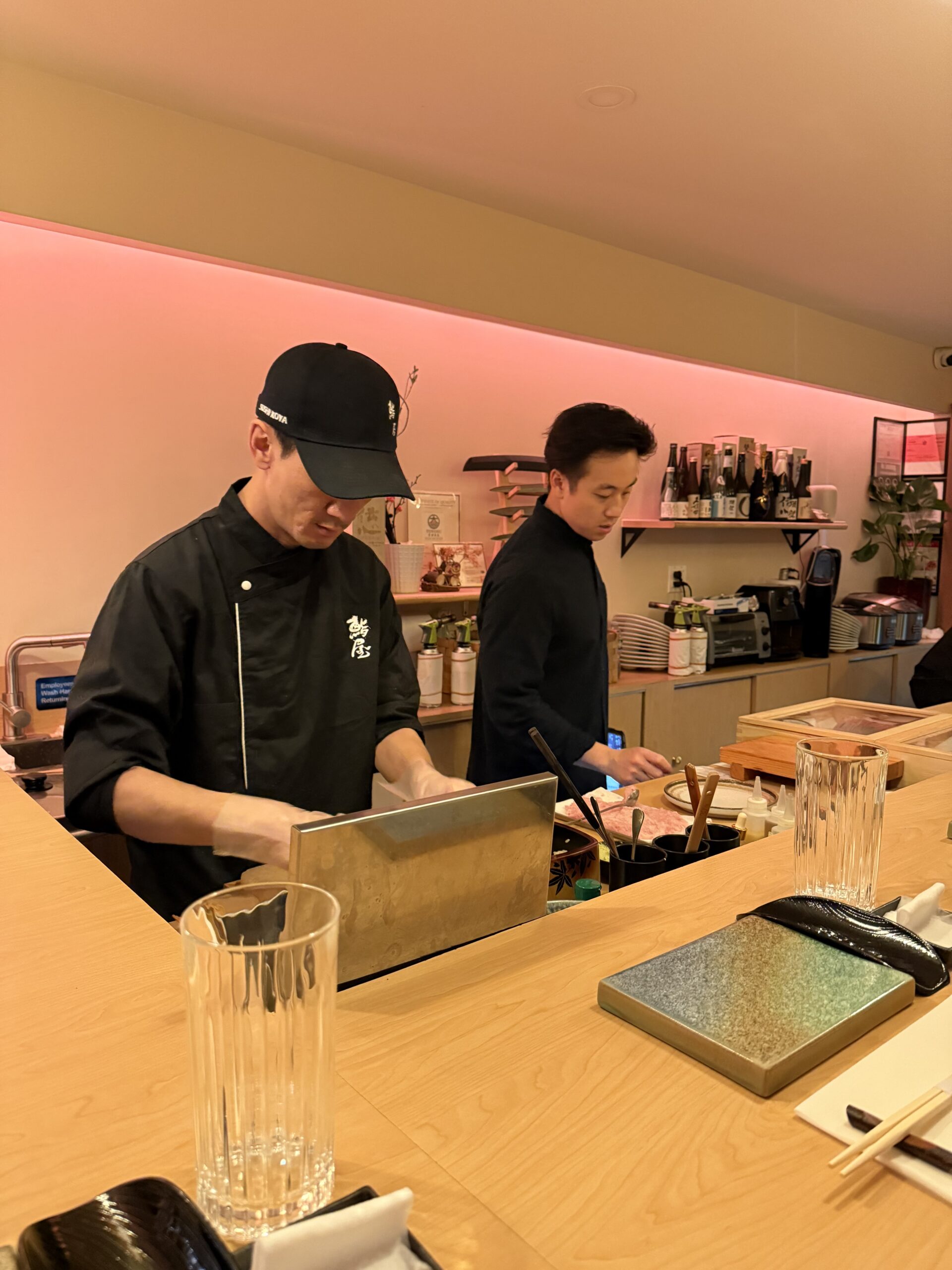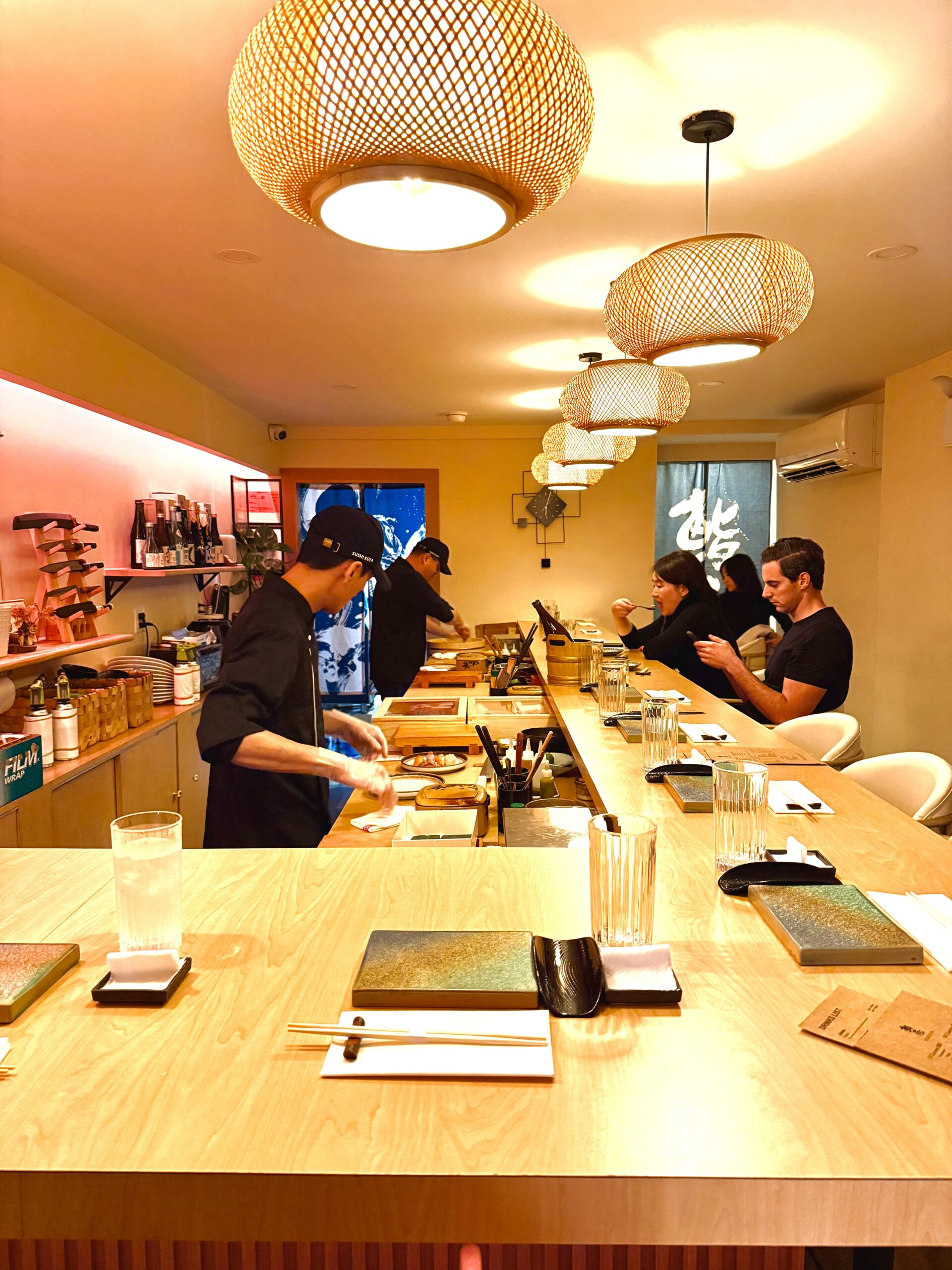 The experience unfolds with quiet precision with perfectly seasoned rice, immaculate cuts of fish, and a chef who diligently announces each perfectly cut piece.