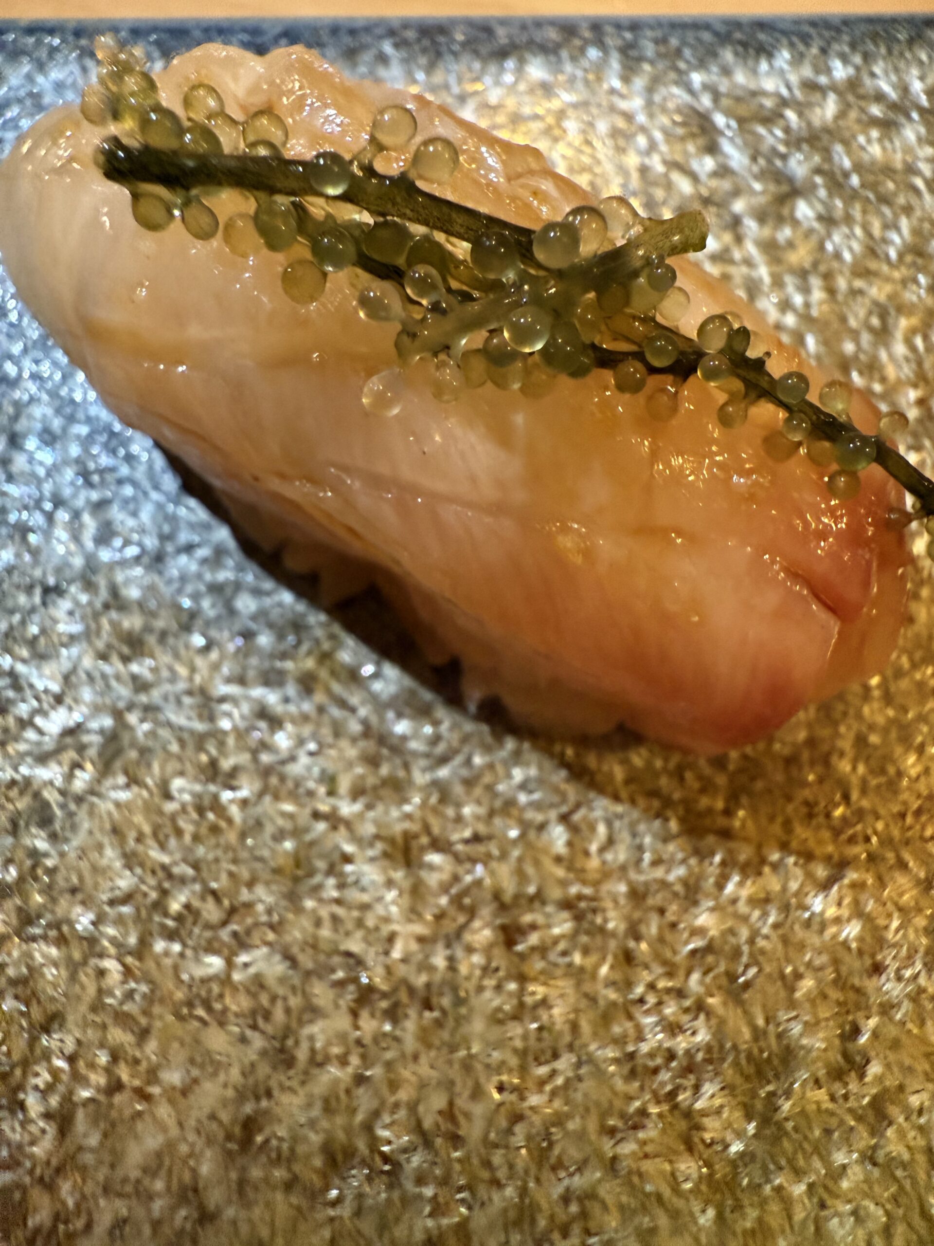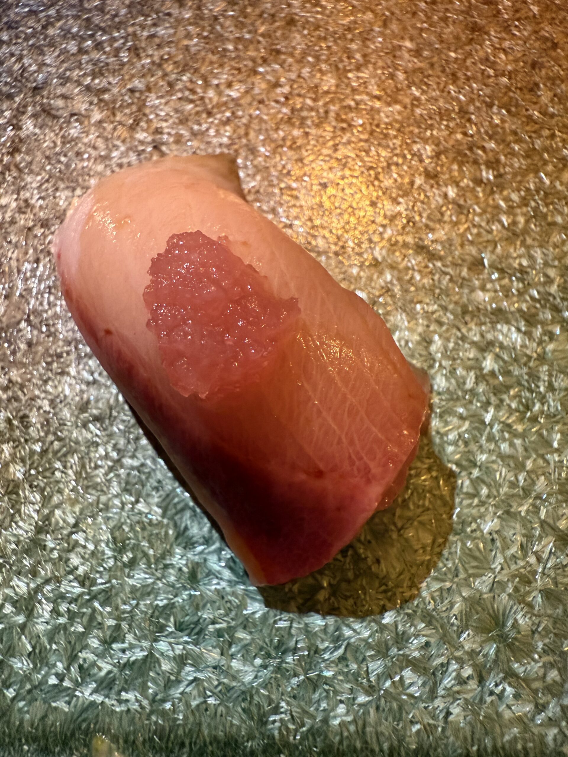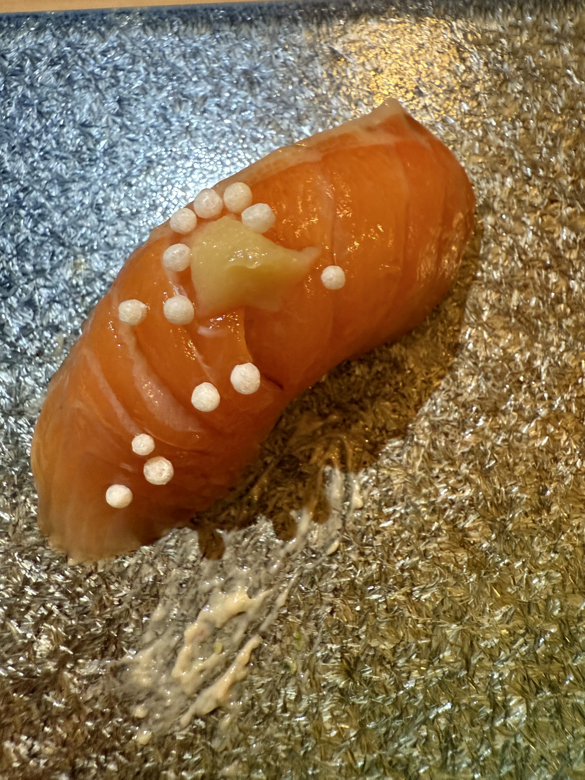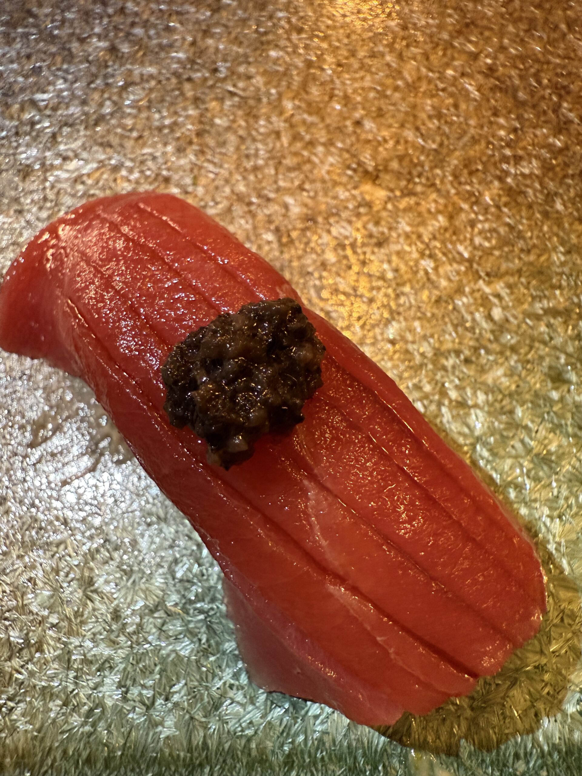 The experience unfolds with quiet precision with perfectly seasoned rice, immaculate cuts of fish, and a chef who diligently announces each perfectly cut piece.