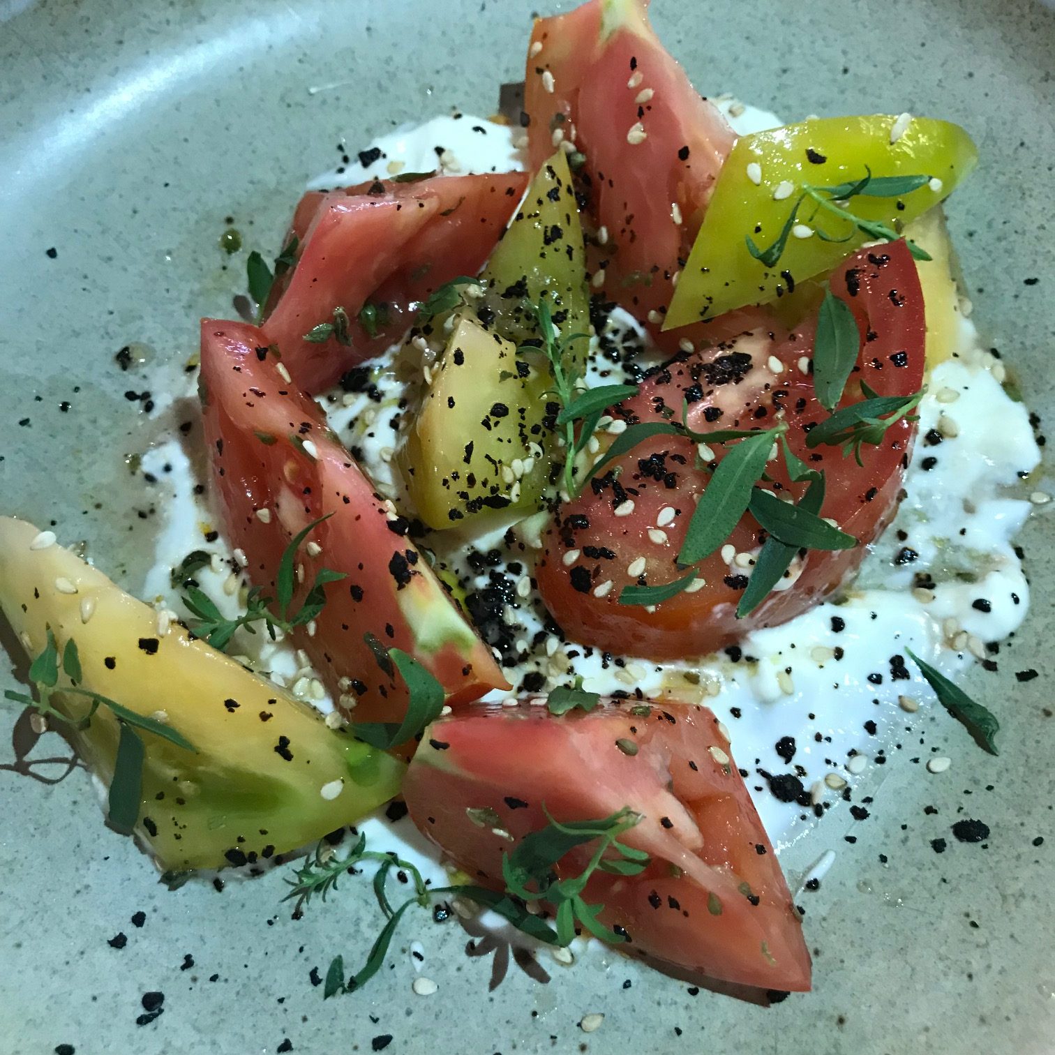 The Heirloom Tomato Salad with Cloumage farm cheese, honey vinegar, benne (sesame seed), urfa (Turkish chile pepper) and anise was amazing. The red and yellow heirloom tomatoes were sweet and perfectly ripe.