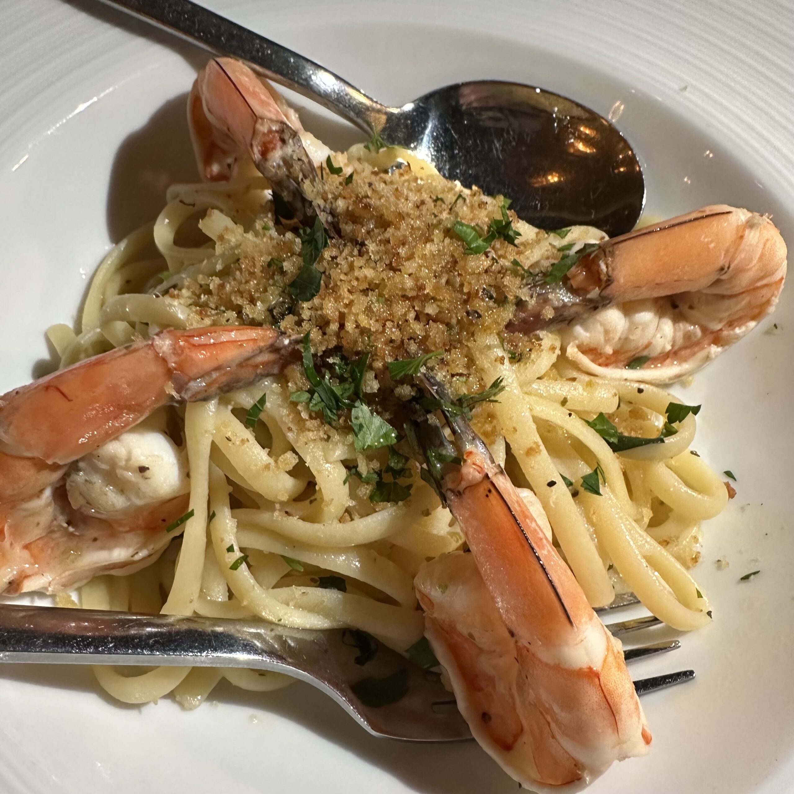 The Gamberi (Shrimp) Scampi was perfection. The gigantic shrimp were tender and flavorful. The linguine was prepared just right with a light garlic, white wine and lemon sauce topped with homemade breadcrumbs ($38).