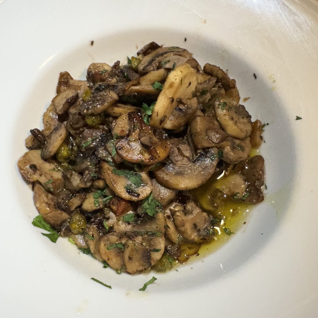The mixed Mushroom were another highlight sautéed with shallots, pancetta and sweet peas ($16).