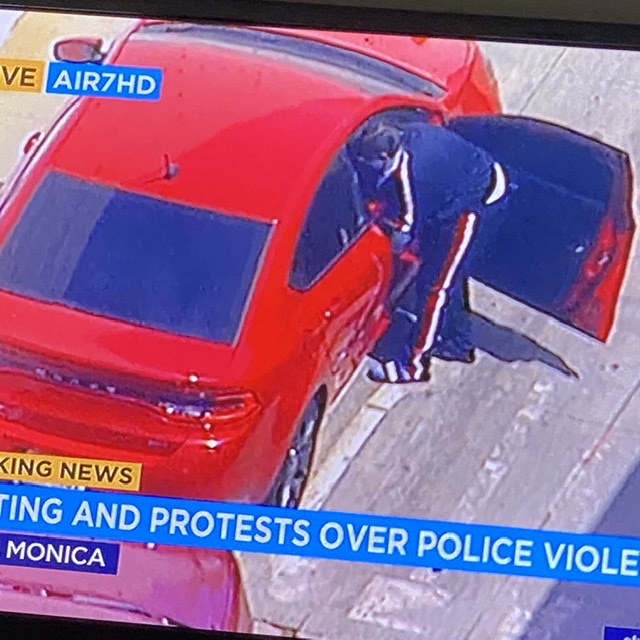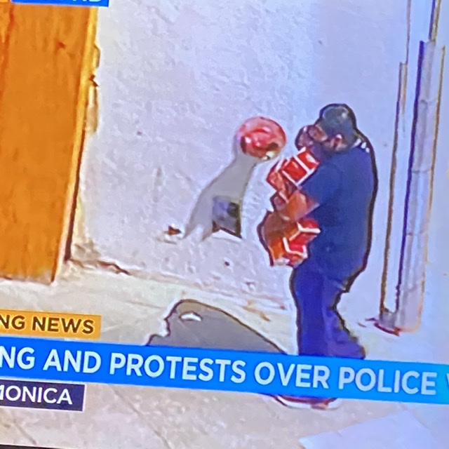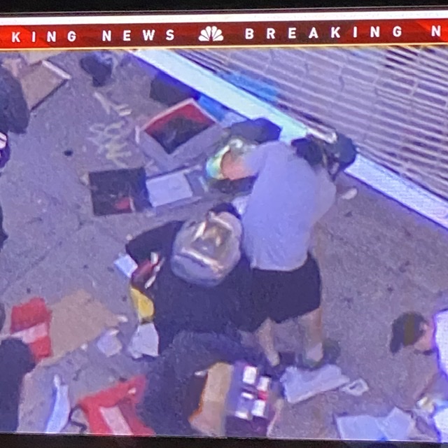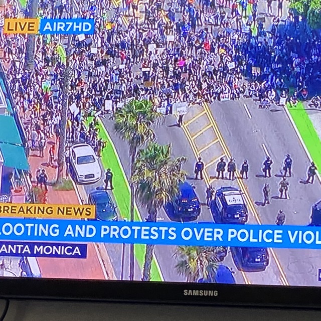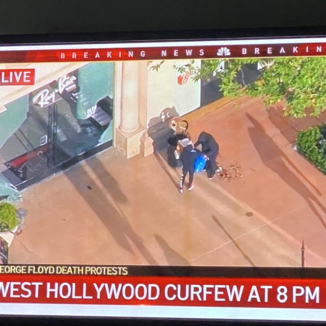 Safe at home, we were watching a local Los Angeles TV newscast, a KNBC chopper was hovering above Melrose and Fairfax in West Hollywood.