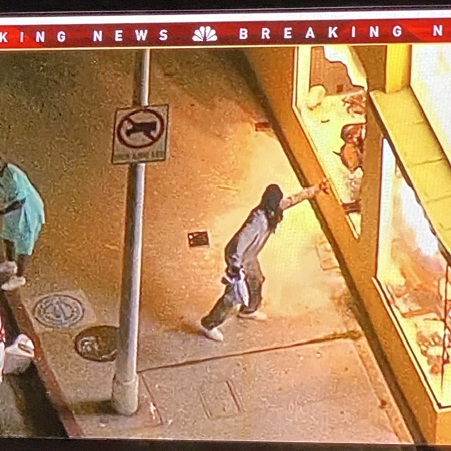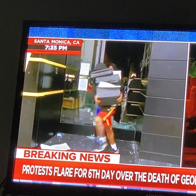 The tipping point was, as darkness descended, the looters who appeared to have no affiliation to the protesters, camouflaging the real cause, smashed the windows of an Adidas store on Melrose and broke the metal gate.