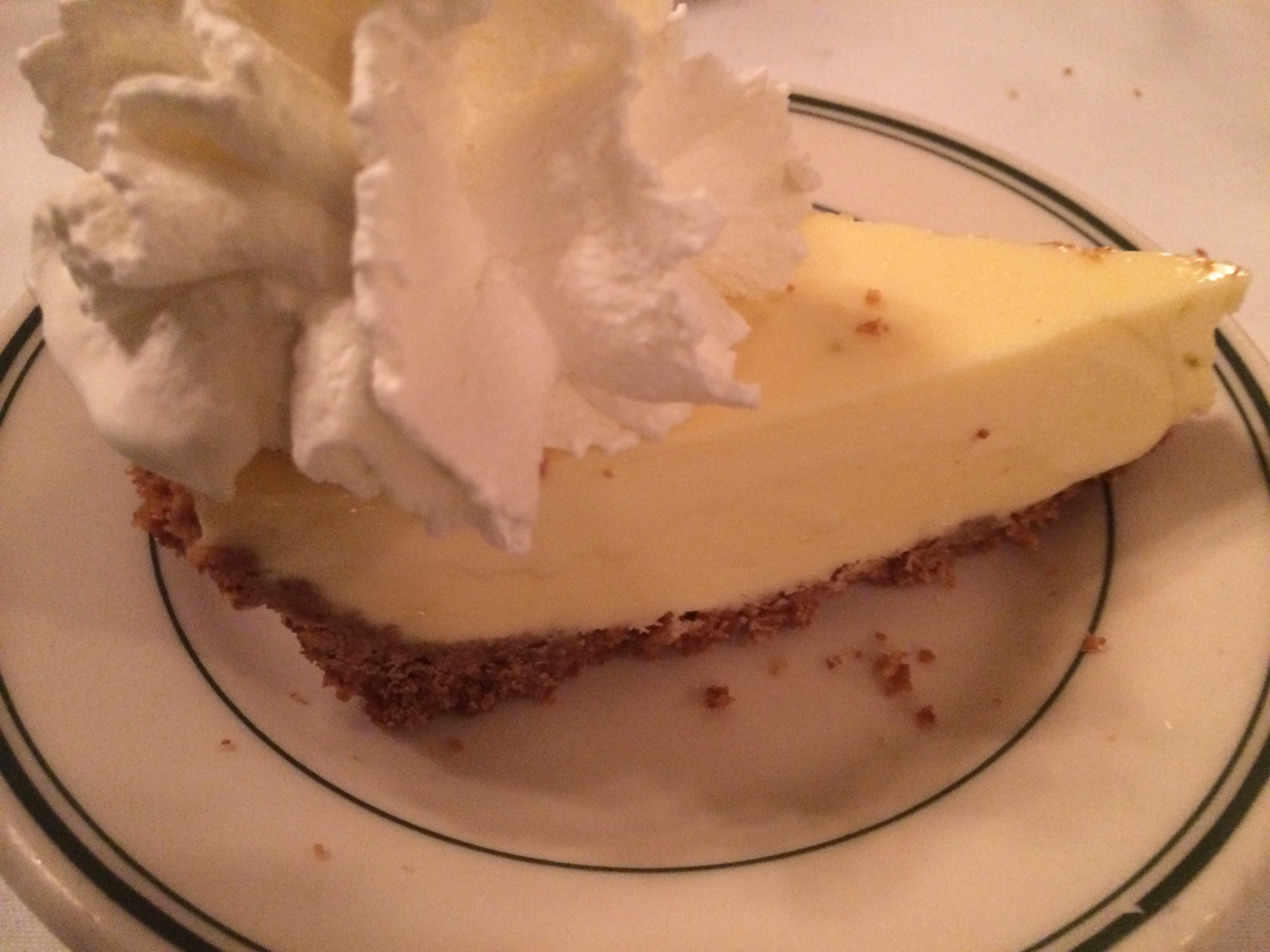 The best Key Lime Pie anywhere is the final touch. We usually buy a whole pie to take home which comes with a can of real whipped cream (slice $12.95).
