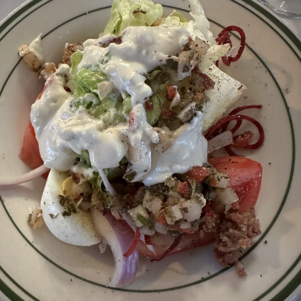 Take note…fresh baked rolls and bread are served immediately upon seating. Recommended is the Wicked Wedge ($15.95) with homemade bleu cheese dressing, crispy and tender 1/2 Fried Chicken platter ($8.95), Creamed Spinach ($11.95) and Roasted Corn ($15.95).
