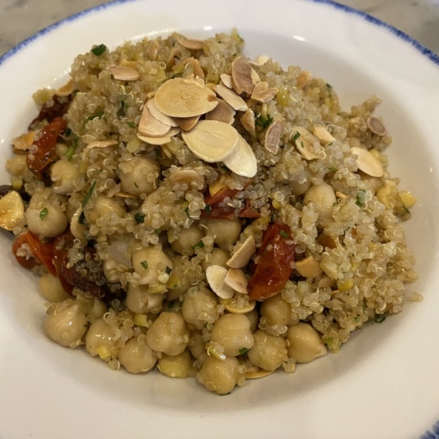 We combined this with a healthy Ceci a Quinoa salad with chickpeas, quinoa, roasted cherry tomatoes, toasted almonds accented with preserved lemon. I sprinkled a bit of EVOO and ground pepper and it was delicious ($11).