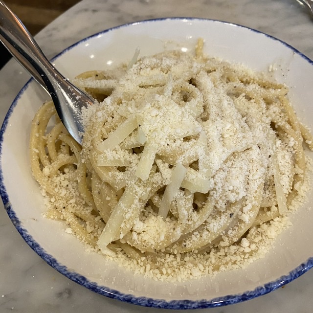 We shared the al dente Cavio e Pepe which had a bit of a kick. It was delicious and the sauce was lightly tossed with the pasta not drenched as it is in many places ($13.50).