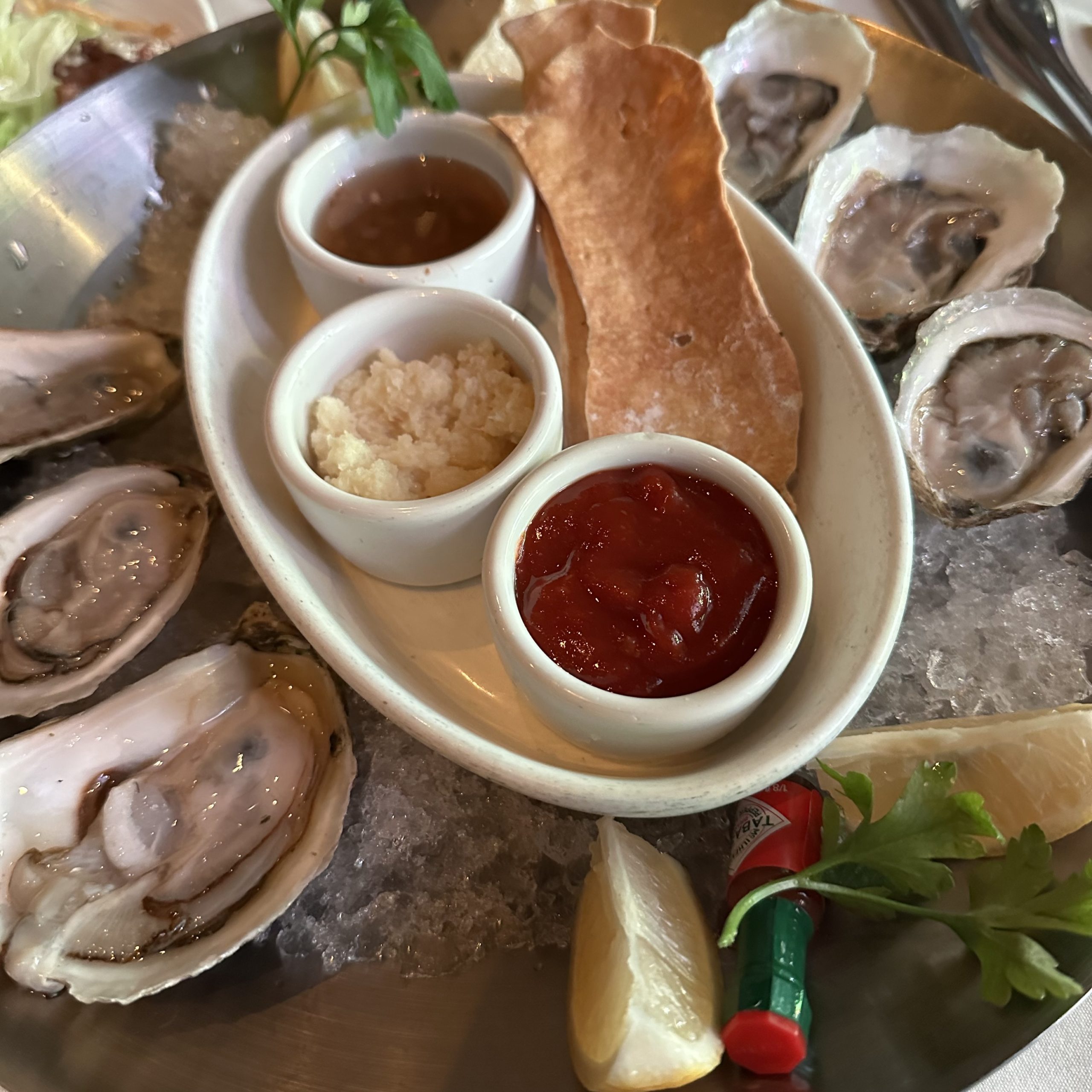 The half dozen Blue Point Oysters were sweet accompanied by great cocktail sauce and potent, fresh horseradish (1/2 dozen $20).