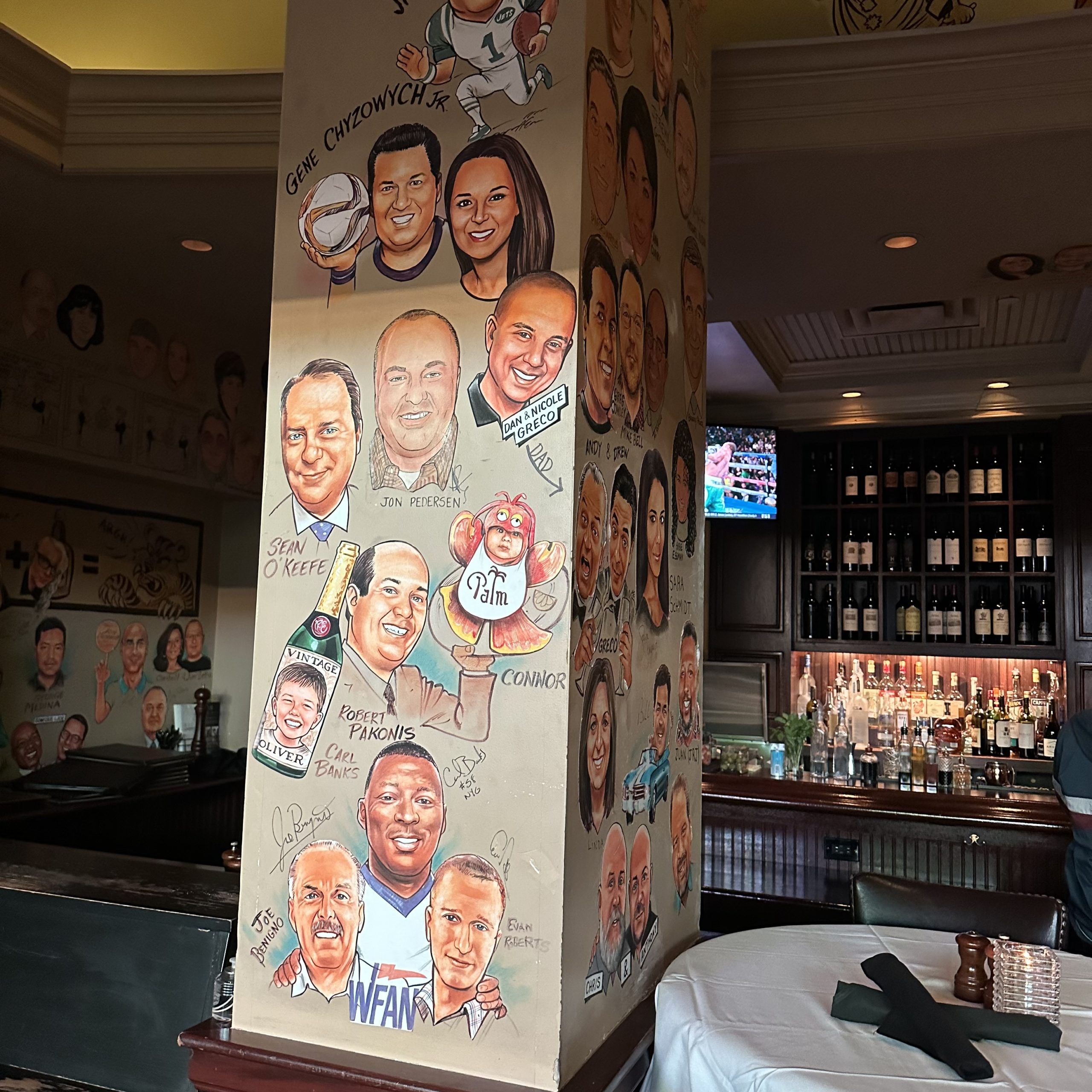 I ate at the Palm in Los Angeles so much that they discussed a caricature of me on the painted walls.