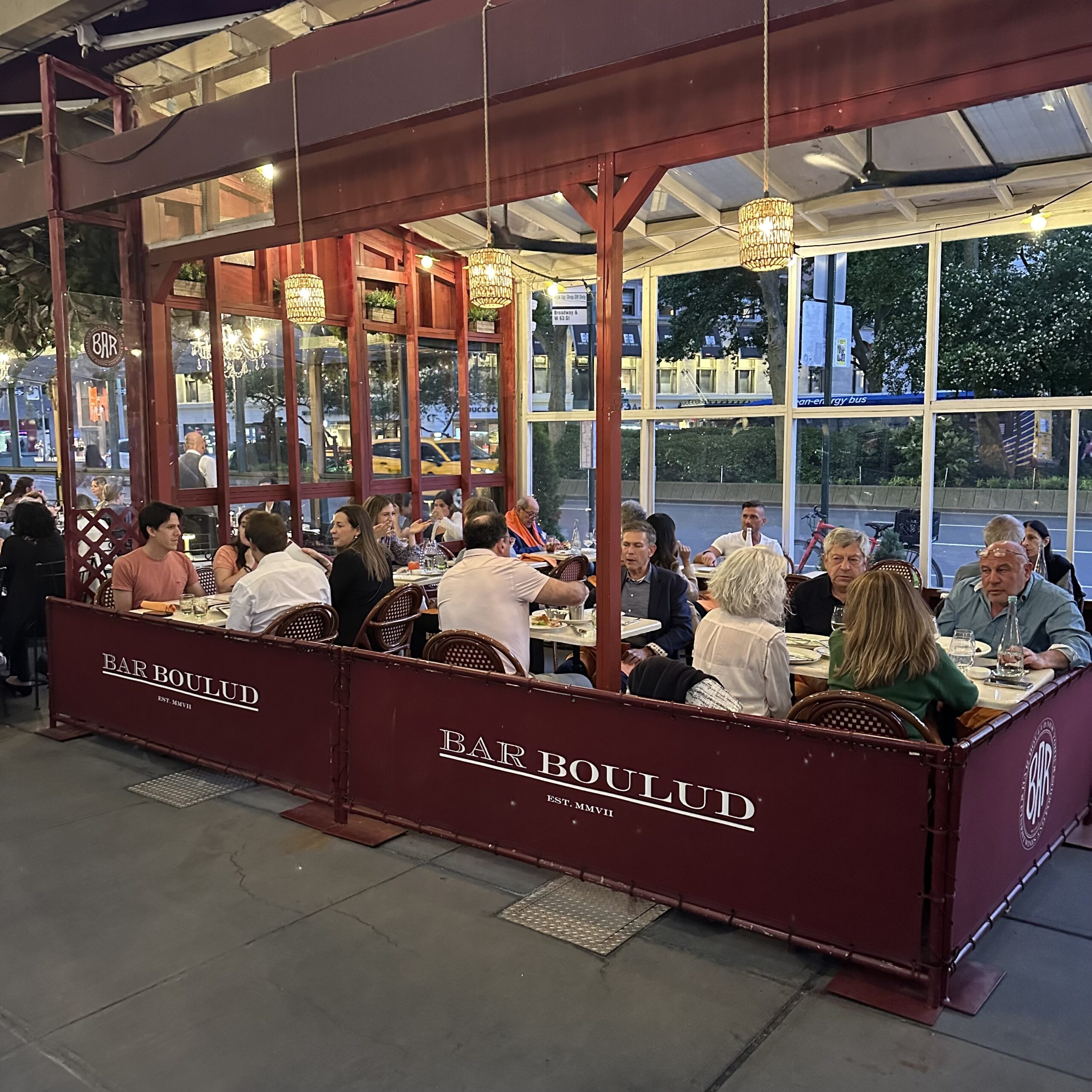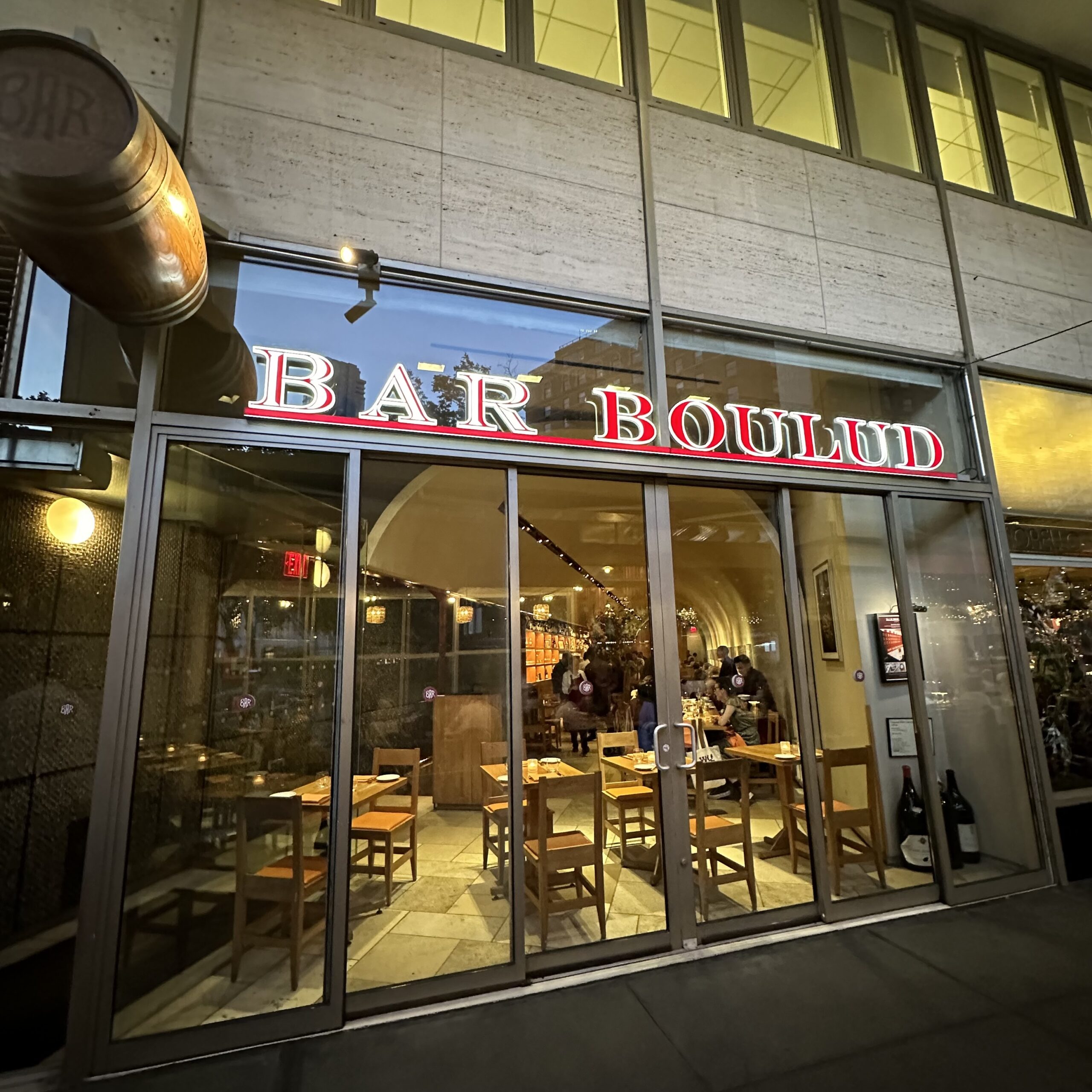 Bar Boulud 1900 Broadway New York City. Open for dinner Monday-Thursday & Sunday 4:30-10pm, Friday and Saturday 4:30-11pm. Lunch is Monday-Friday 11:30am-2:30pm. Brunch on the weekend 11am-3:30pm. Reservations on Resy. There is outside dining available.