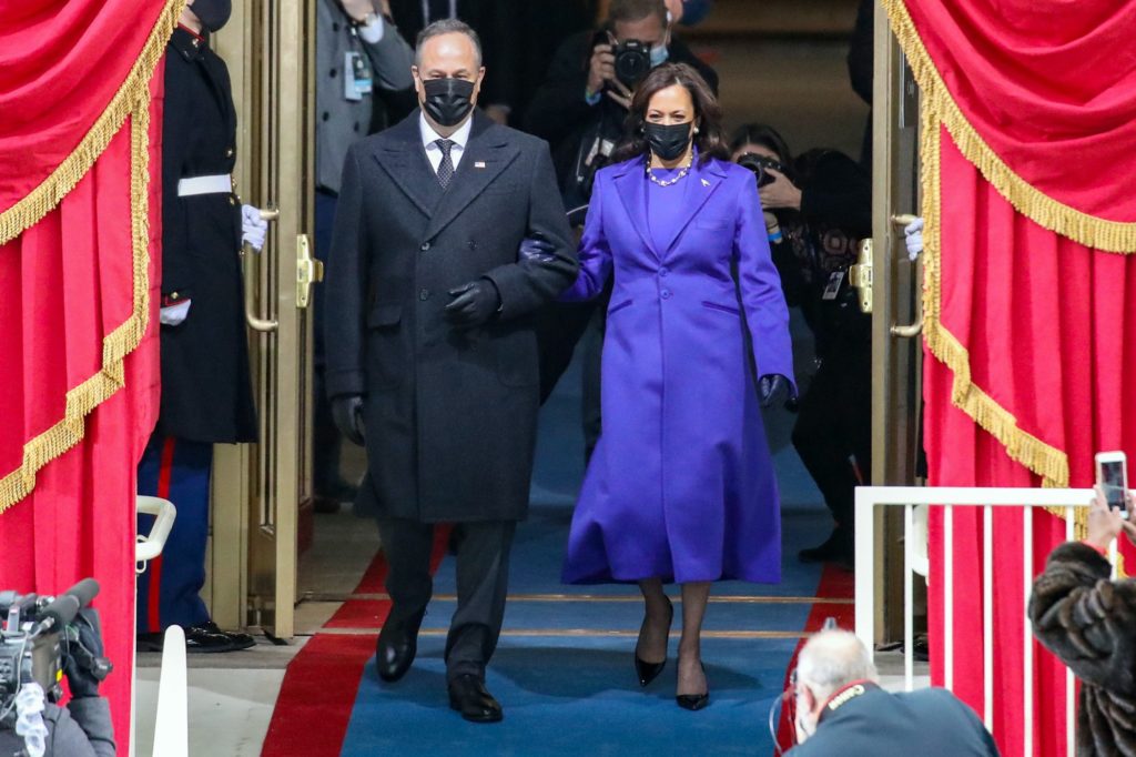 Vice President Kamala Harris was regal in purple and the fact that she wore 2 garments created by two different black designers was very meaningful. Harris, in her signature pearls, donned a beautiful ankle length ensemble by Sergio Hudson, as well as designer Christopher John Rogers.
