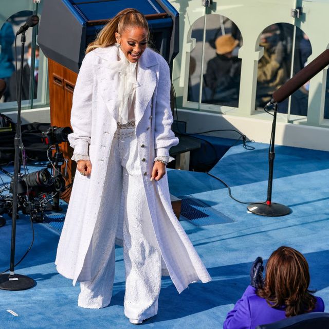 JLo was decked out in a suffragette white Chanel pantsuit. Coco Chanel would have taken one look and said, “Before you leave the house, look in the mirror and take one thing off. It is always better to be underdressed.”