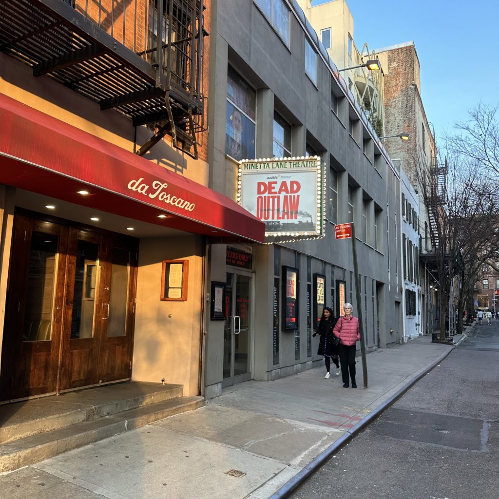 Dead Outlaw is at the Minetta Lane Theatre, a great place to see a show, for a six week run through April 7th. If you are living in New York City or visiting then hustle down to Greenwich Village.
